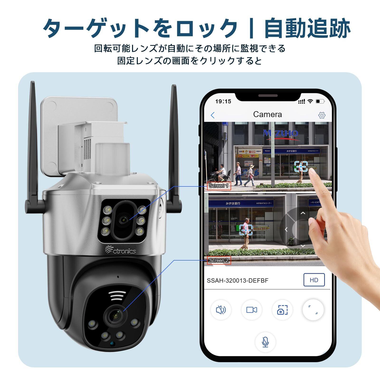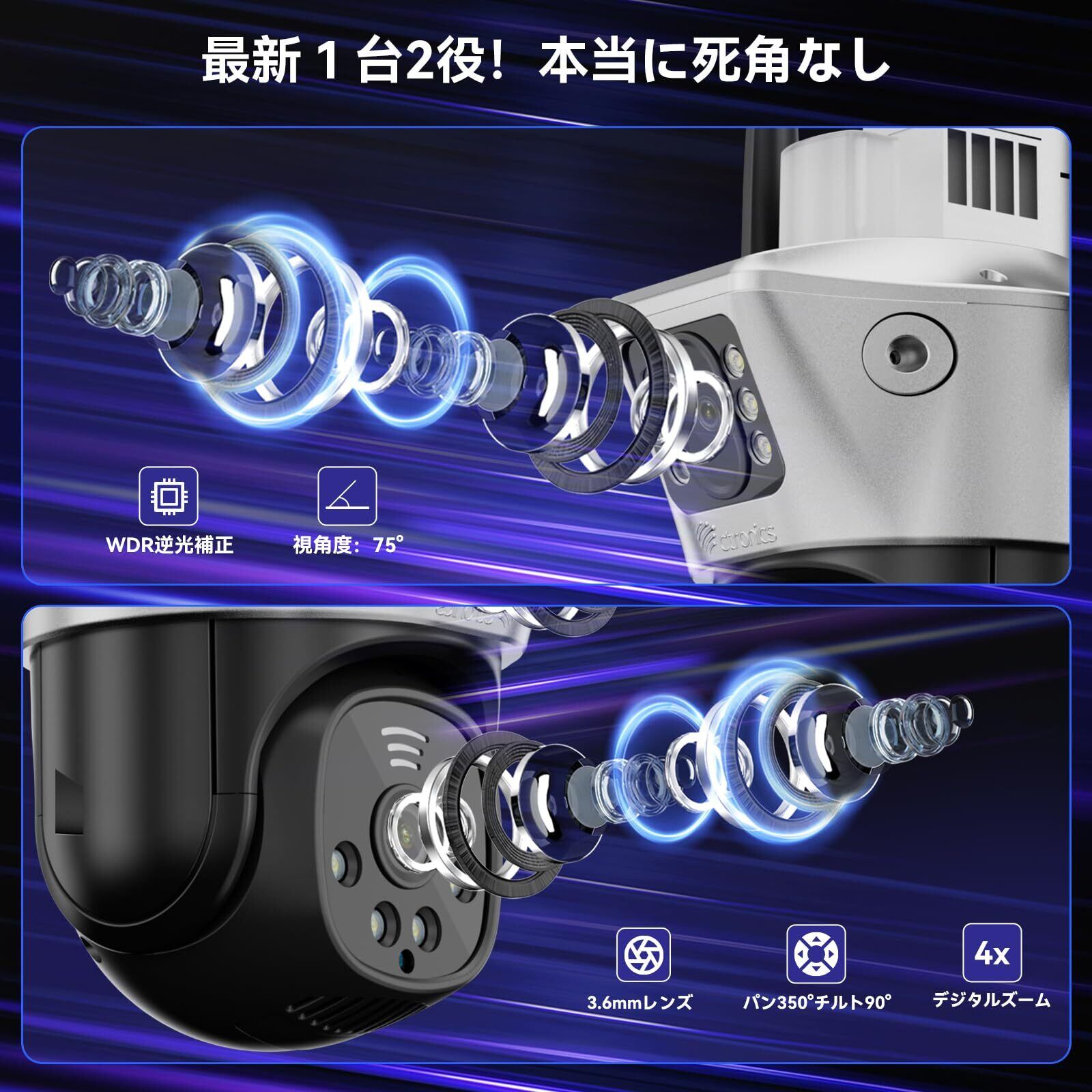 【二台カメラのコンビ!】Ctronics 防犯カメラ 屋外 5GWi-Fi対応 監視カメラ 死角なし AI人体検知 自動追尾 夜間カラー撮影 全日録画 スケジュール録画 投光威嚇 APモード FHD1080P 双方向会話 家族共有 遠隔操作 室外 iOS/Android/PC/MAC対応 128GBMirco SD対応(別売り) IP66防水(ONVIF NVR対応しません)