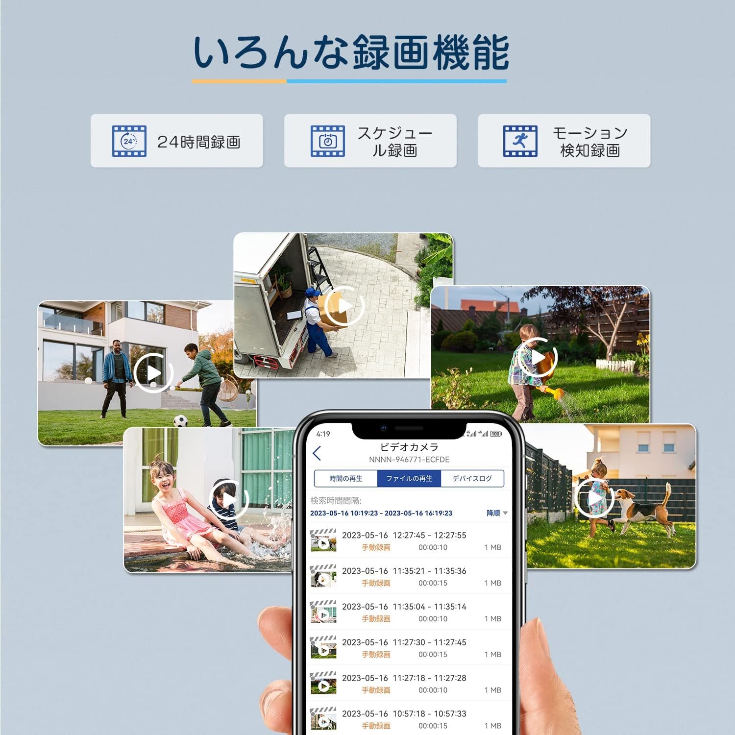 複雑な設定不要、QRコードスキャンだけ!マニュアル録画、全日24時間録画 、動体検知録画 、スケジュール録画など多様な録画機能が選べます。IP66防塵防水仕様があり、駐車所やビル、玄関など幅広い用途でご利用いただけます。電波法認証(TELEC)、PSE認証済み、「技術適合認証マーク」取得製品で安心してご利用いただけます。