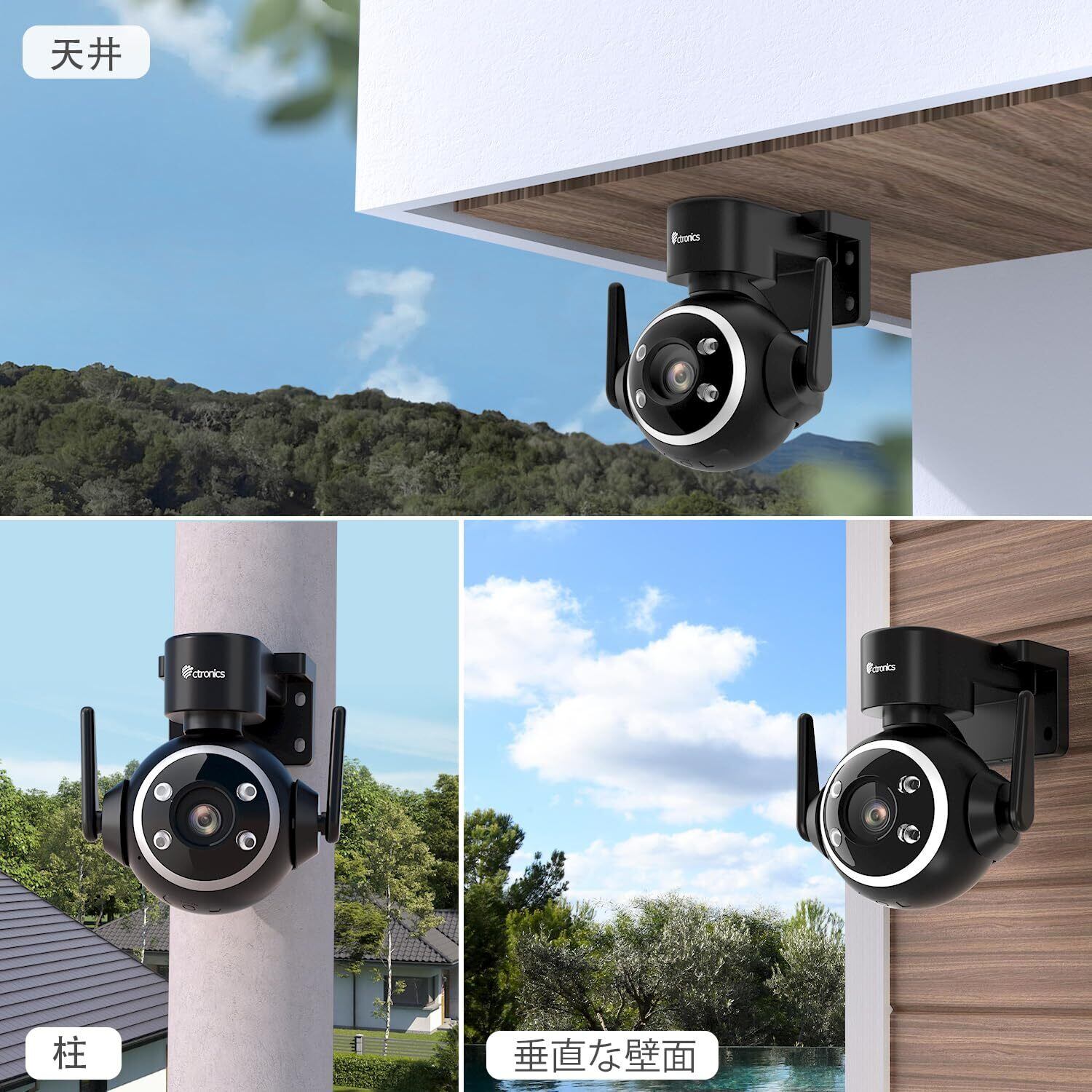 【在庫処分】Ctronics 防犯カメラ 屋外 2.5K 4MP 5G Wi-Fi 対応 自動追跡 スマート暗視 ヒューマン検知 声光威嚇 プリセット機能 ONVIF/NAS対応 警報通知 音声通話 遠隔操作 24時間常時録画 検知エリア特定 天井/壁面取付 パンチルト 128GBMicro SDカード対応 有線LANケーブル/防犯ステッカー付 iOS/Android/PC対応