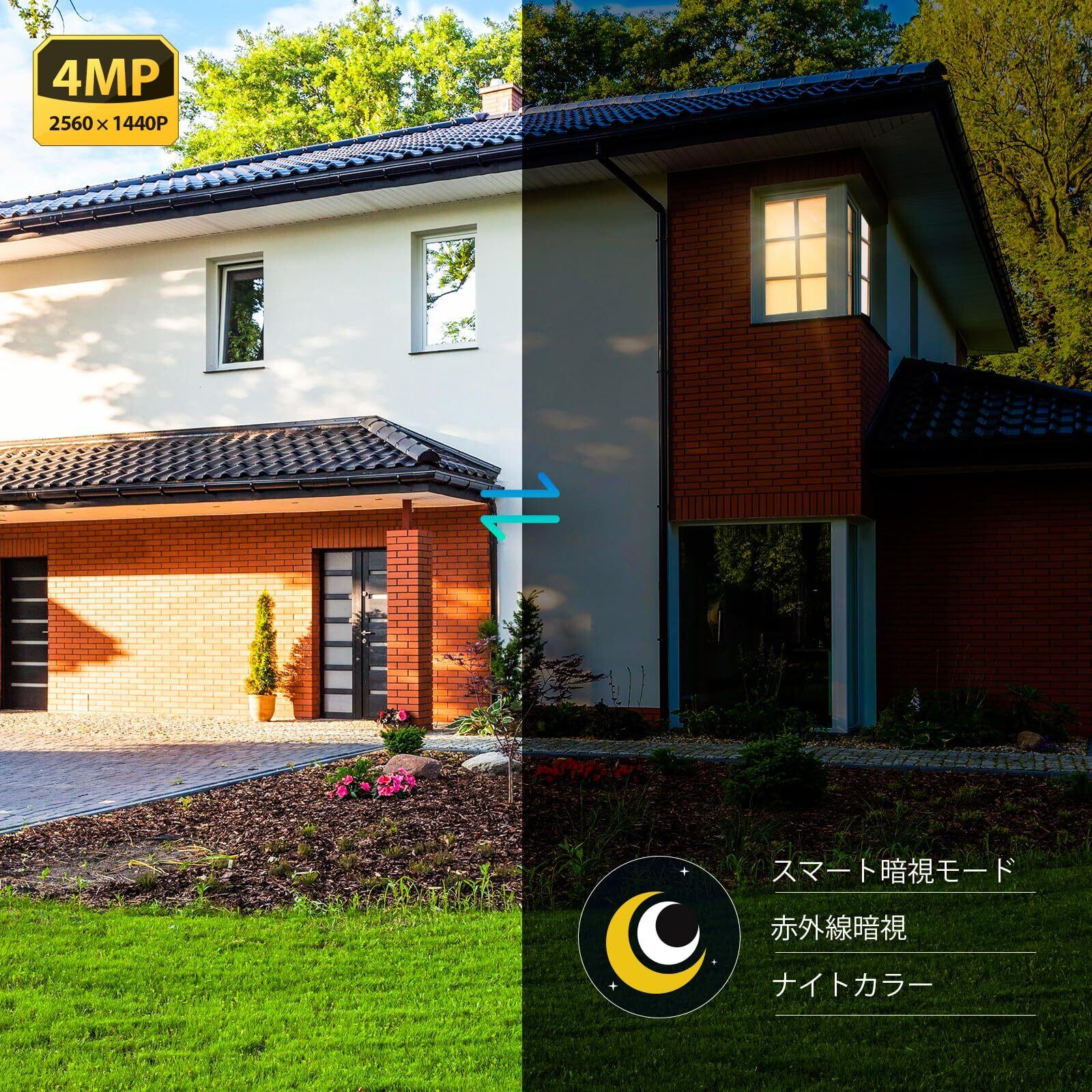 現在主流的な画質は2Kといっても、200万画素~300万画素で、細部まで録画ができないことも多くあります。この防犯カメラは本物の4MPイメージ センサーを採用してより鮮明・高画質な映像を映し出すことができます。2.5K 4MP(2560*1440P)の最適な画質で遅延なくスムーズに映します。常時カラー、白黒撮影、スマート暗視の三つのモードから選べます。