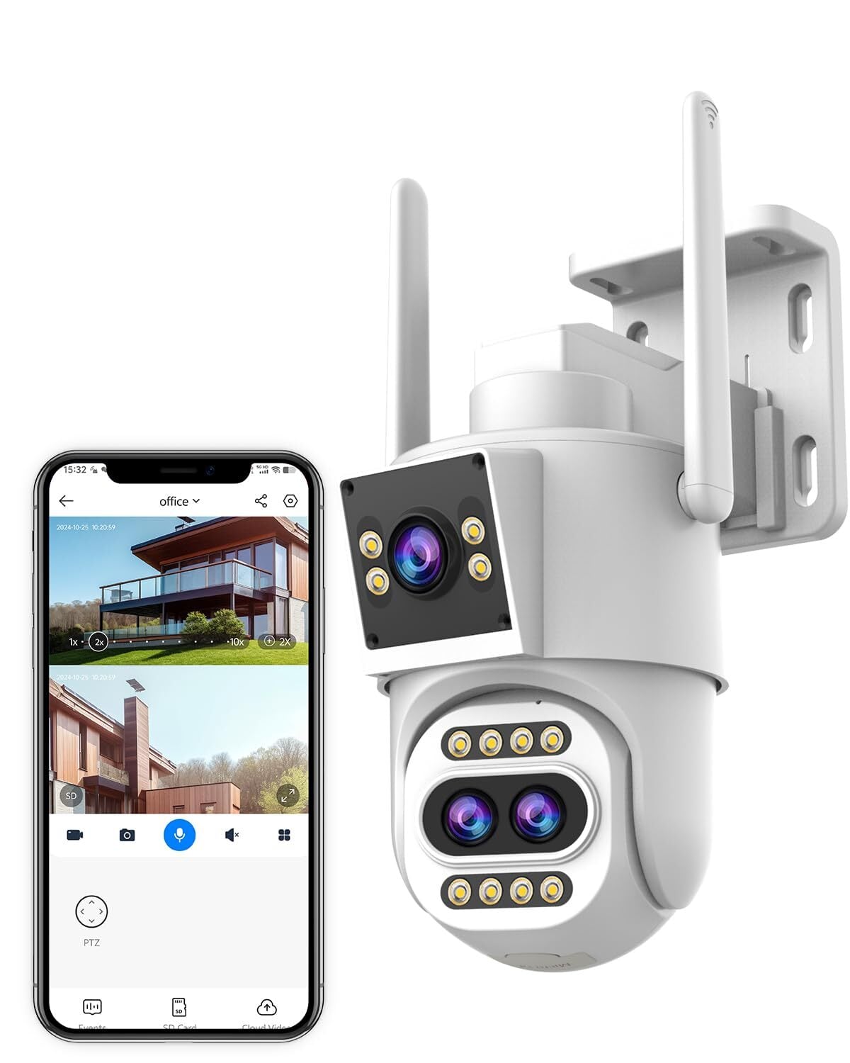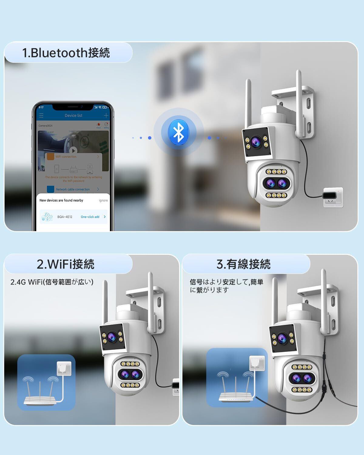 【2025最新 2Kx2 二重レンズ・360°全方位監視】JOOAN 防犯カメラ 屋外2.4G WiFi対応 有線Lan カメラ 自動追尾・24時間録画監視カメラ 室外用 ペット 留守番カメラ遠隔操作 無線wifi接続 夜間カラー撮影 PTZ機能 首振り 警報通知 双方向音声通話 常時録画 警報録画 年中無休 見守りカメラ 日本語アプリ電源コード式