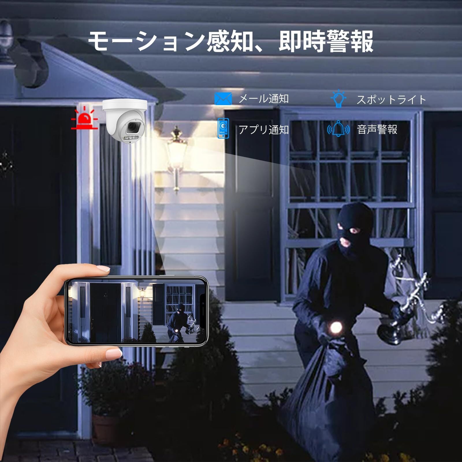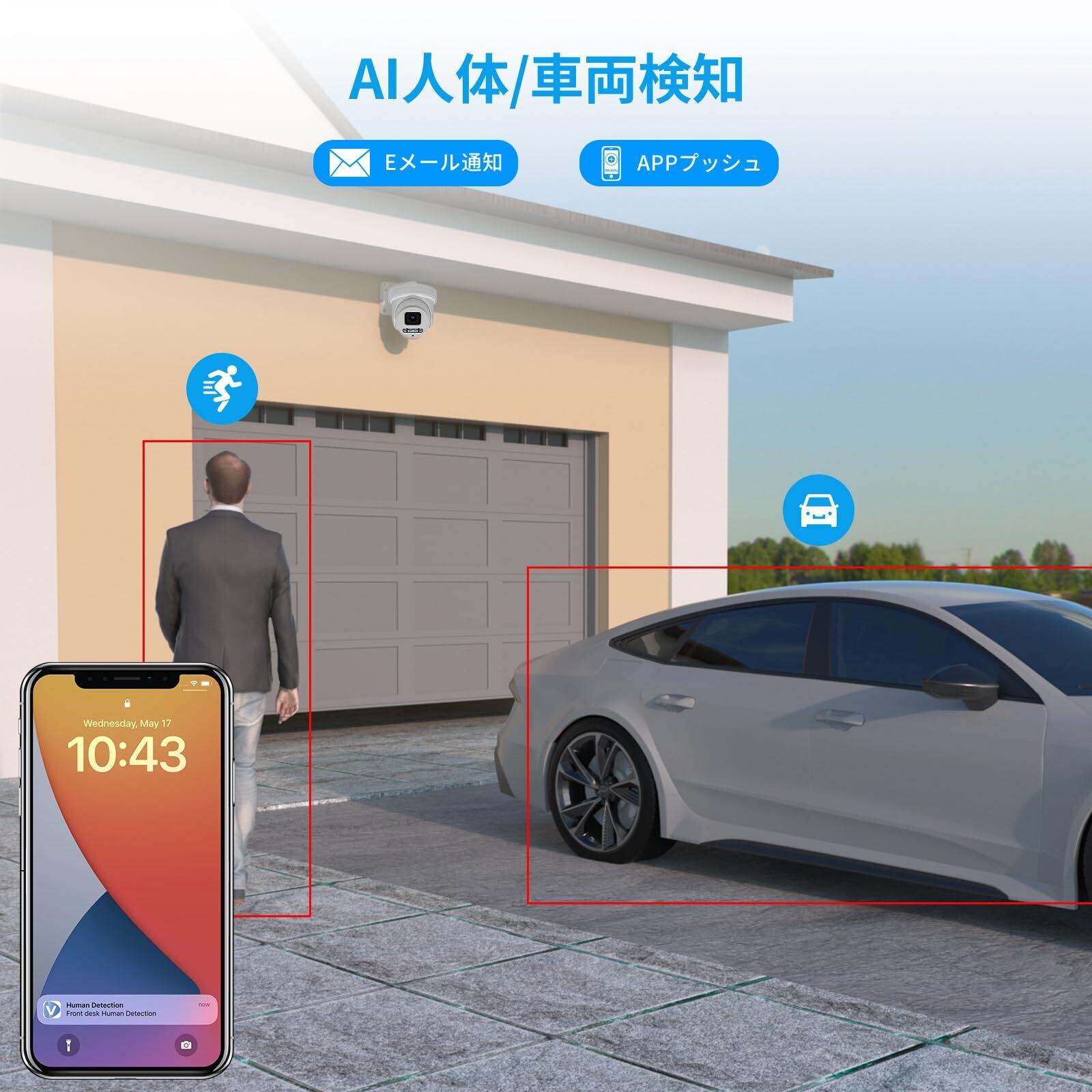人体/車両認識・灯光&音声警報:この防犯カメラは、人体検出と車両検出の機能を備えています。もしも不審者が侵入した場合、事件の詳細を明確に記録することができます。さらに、光と音声の警報機能も装備されており、不審者を検知すると、光が点滅し、警報音が鳴り響きます。これにより、優れた防犯対策が可能となり、安全を確保する手助けとなります。