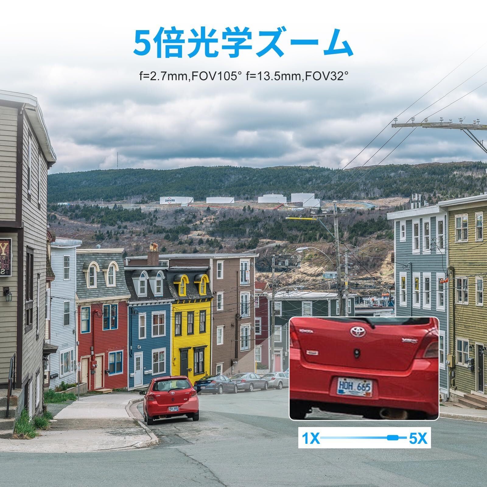 8MPの高解像度と5倍の光学ズーム:このPTZ PoEカメラは、8MPの高解像度と5倍の光学ズーム機能を備えており、ズームインしても非常にクリアな映像を提供します。水平方向には280度、垂直方向には90度回転可能ですので、この屋外セキュリティカメラは盲点なく、全方向の監視エリアをカバーします。(注意:自動追跡や巡回機能はサポートされていません)
