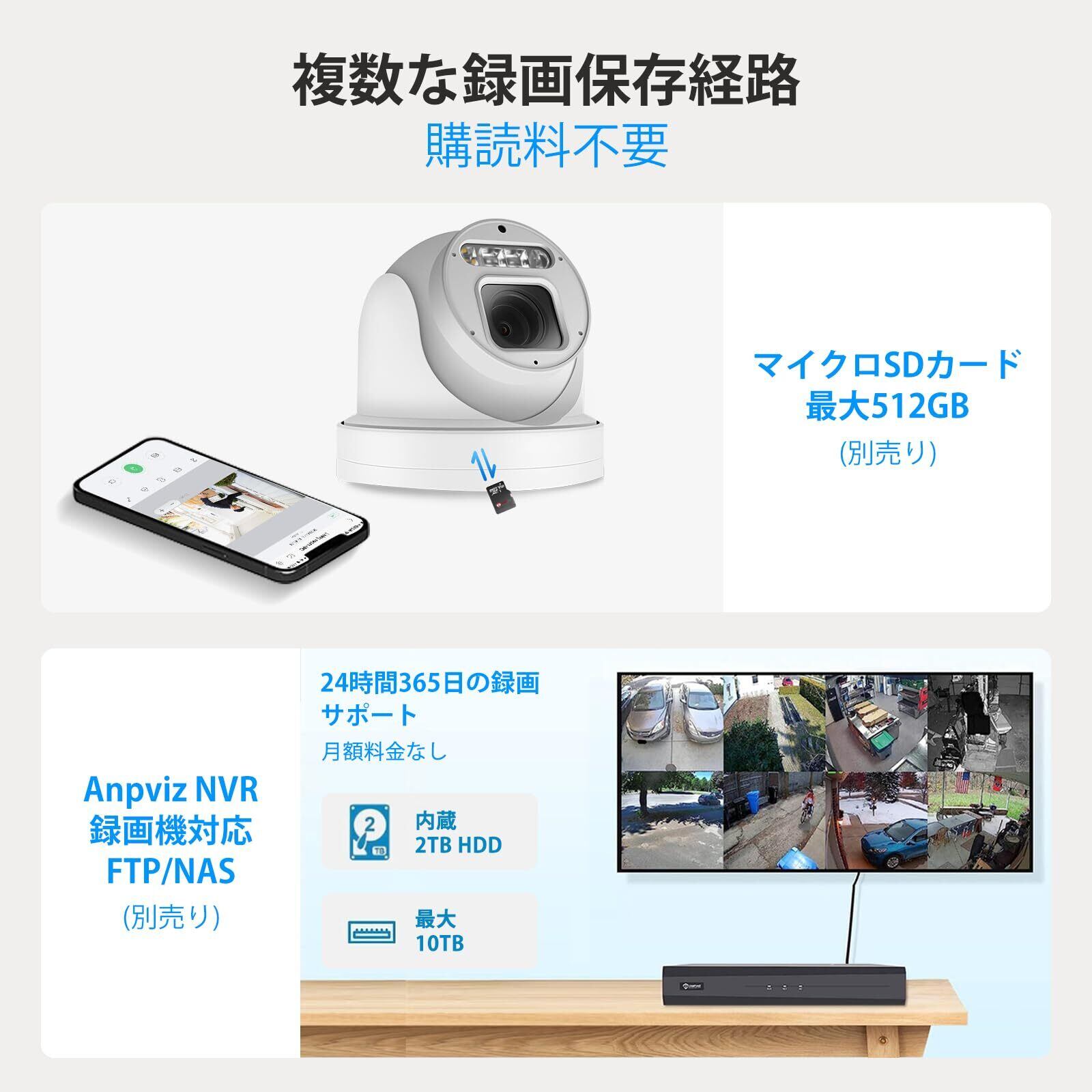【在庫セール】Anpviz 防犯カメラ 8MP解像度 5倍光学ズーム PoE接続 監視カメラ H.265動画圧縮技術 ネットワークIPカメラ セキュリティ SDカード対応 ONVIF対応 PTZ首振り AIスマート人体・車両検知 センサーライト付き 夜間カラー撮影 カラーナイトビジョン 音声威嚇 24時間常時連続録画 双方向音声 マイク内蔵 録音 IP66防水防塵 お宅/庭/店舗/商業施設