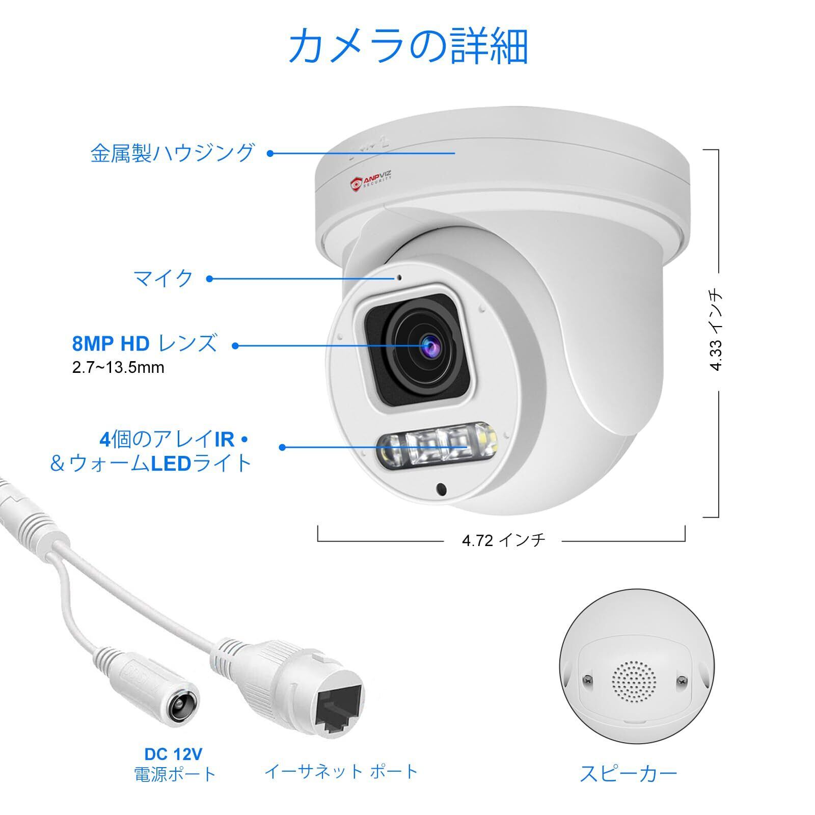 Anpviz 防犯カメラ 8MP解像度 5倍光学ズーム PoE接続 監視カメラ H.265動画圧縮技術 ネットワークIPカメラ セキュリティ SDカード対応 ONVIF対応 PTZ首振り AIスマート人体・車両検知 センサーライト付き 夜間カラー撮影 カラーナイトビジョン 音声威嚇 24時間常時連続録画 双方向音声 マイク内蔵 録音 IP66防水防塵 お宅/庭/店舗/商業施設