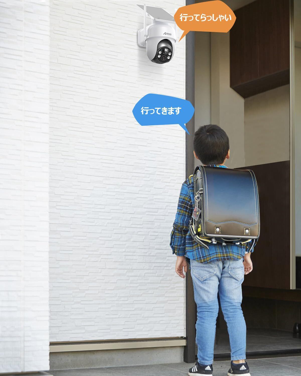 【デバイス共有・双方向通話】ネットワークカメラには、内蔵マイクを搭載し、映像だけではなく音声も確認することができます。高輝度LED 4個を搭載し、人体検知が触発されると、防犯カメラは発光とともに警報を鳴らして侵入者を怖がらせます。また、マイクを通じて現場にAndriodやiphone携帯アプリ経由カメラ側と通話可能となります。カメラ管理者として他の人に閲覧/操作のことを許可することができ、家族や友達が同時にリアルタイムで録画を視聴可能。出張でも外出でも郵便者等通話でき、家族と一緒に高齢者と子どもの安全を見守ります。(カメラの使用は2.4Gwifiのみ対応で、5gwifi対応できません。また、自宅の WiFi パスワードに特殊文字 (@、#、$、%、^、& など) を設定しないように注意してください。設定しないと、カメラが接続できなくなります。)