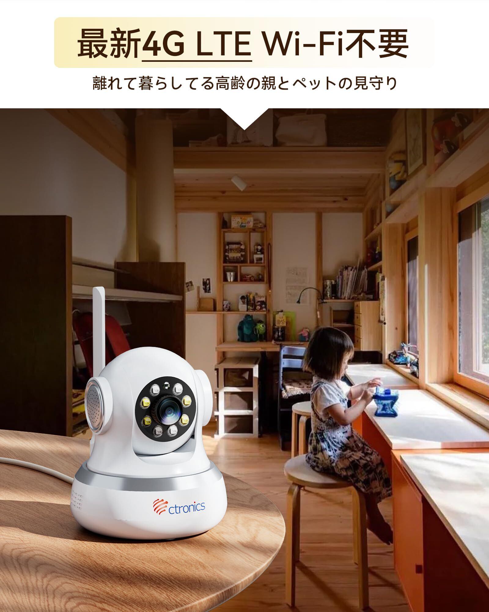 【数量限定】【 WiFi不要 4G LTE 】 Ctronics 防犯カメラ 自動追跡 見守りカメラ PC対応 ペットカメラ 24時間常時録画 スマート暗視 声光威嚇 SIMカード付属 300MBデータ体験 AI検知 アラーム通知 壁掛け/天井吊下げ パンチルト 家族共有/会話 クラウドストレージ・MircoSDカード対応 (4G回線のみでWifi無し)