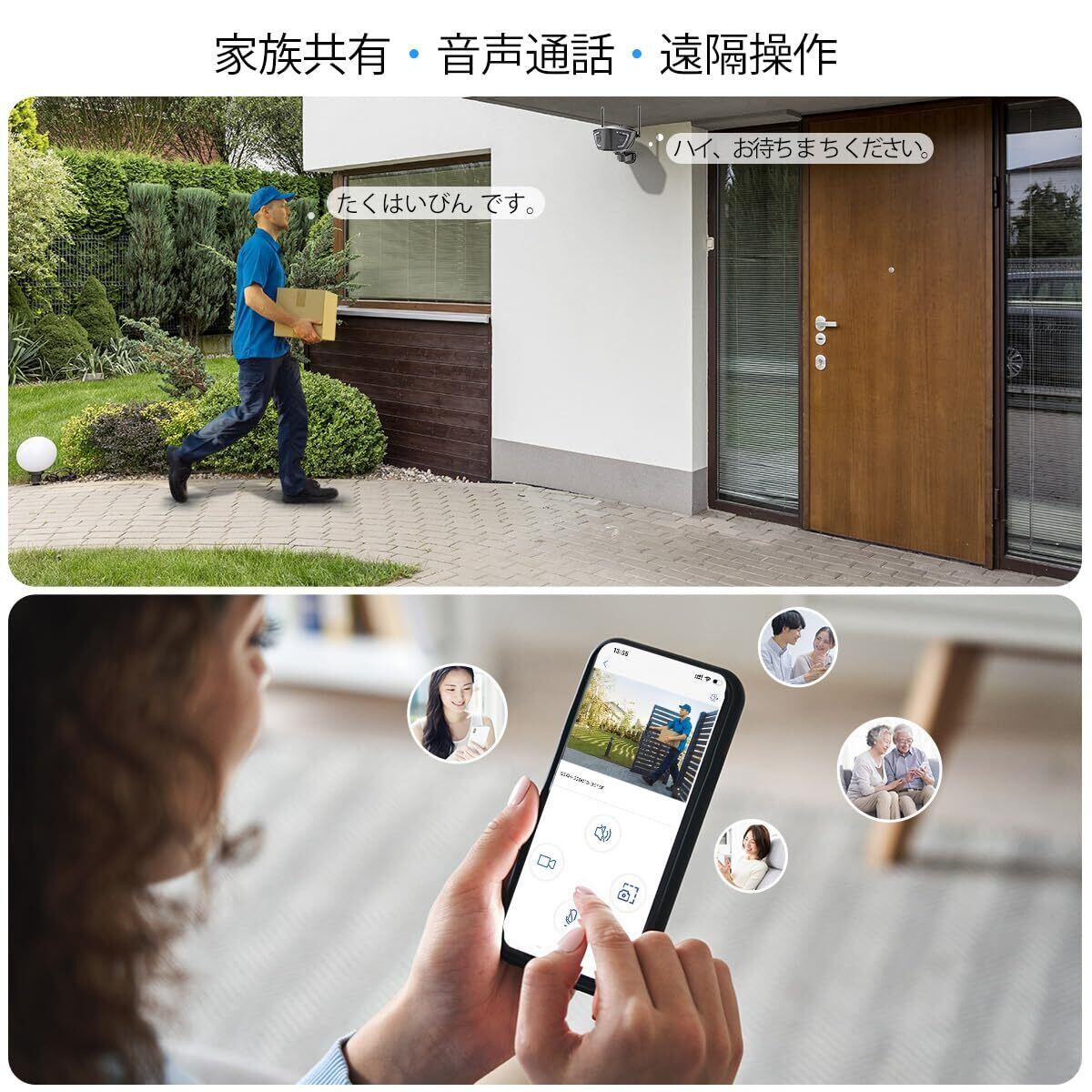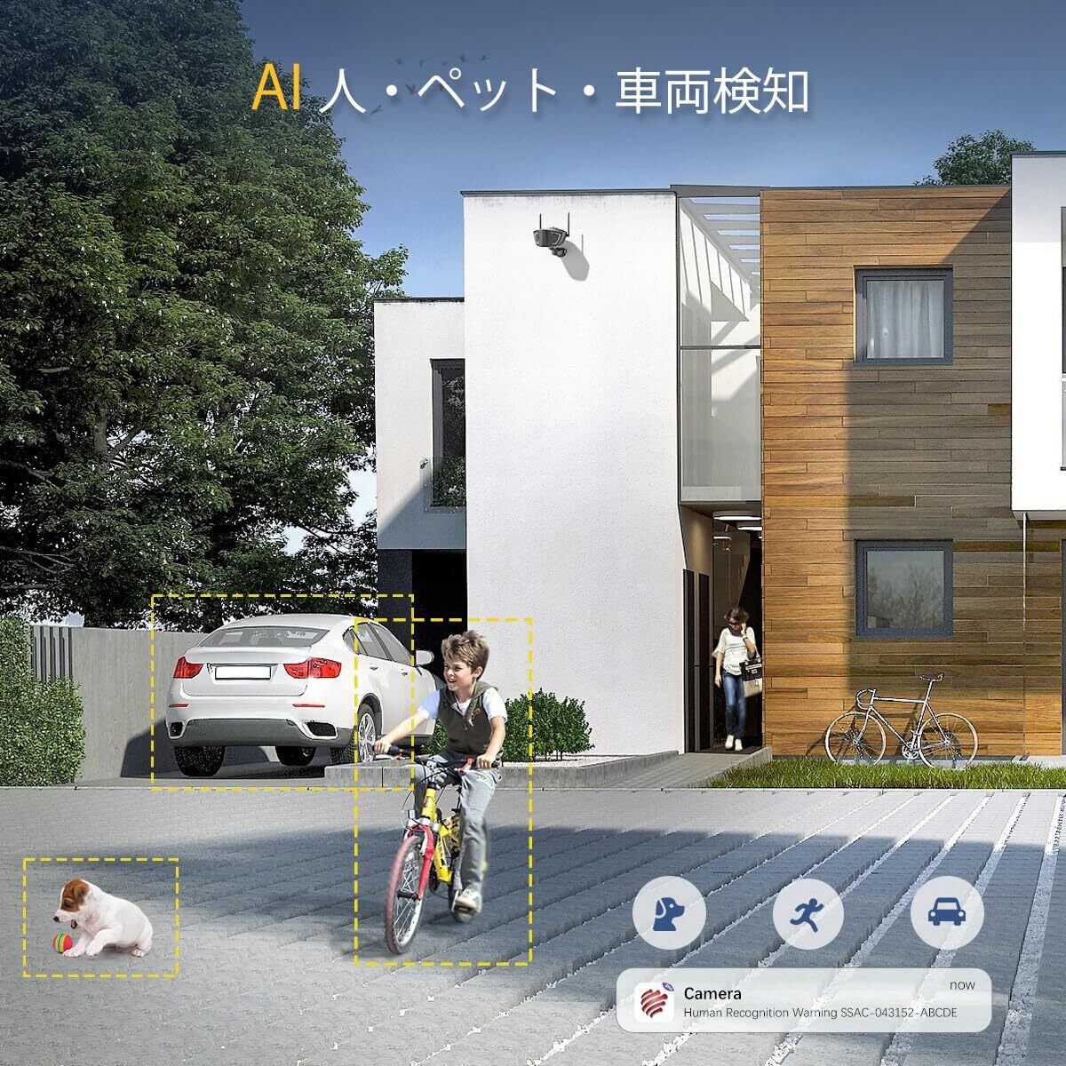 【今までに無い最高のAI検知機能】 安いカメラとは段違い検知機能は搭載されて、人だけでなくペット、車両も識別検知できます。検知感度・監視エリアを細かく設定できるし、樹木が揺れたり、虫などの誤検知がありません。さらに、AI暗視モードがあるので、必要に応じて自動で切り替えます。音光威嚇機能により、アラーム音をカスタマイズできるし、不審者対策も来客対応も万全です。