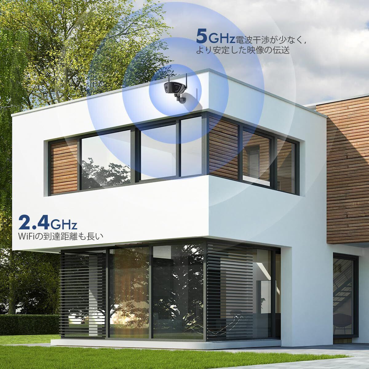 【高速かつ安定な通信】 有線LAN接続(ケーブル付属)と無線接続とも可能です。5DBiアンテナを使用して、5GWi-Fi対応なので、高速かつ安定した通信が確保されます。動画の24時間撮影、過去の動画確認(日付・時間管理)、外出先からリアルタイムで映像確認が便利です。