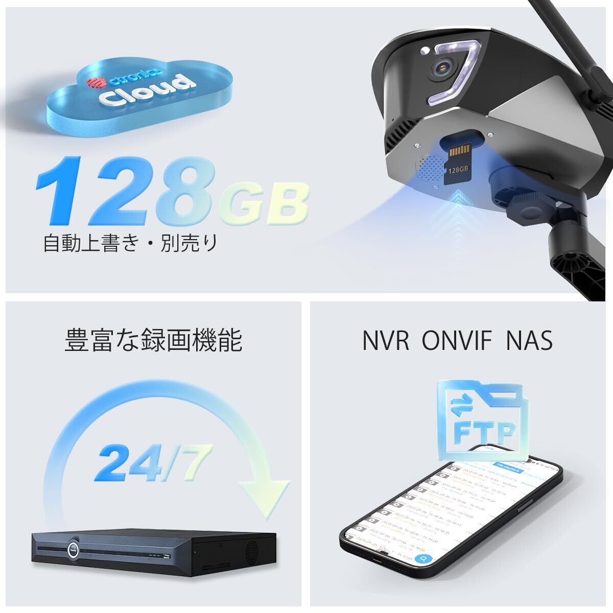 【コスパ、機能性を兼ね備える】 インターネット経由で自宅を世界中どこからでも監視できます。クラウドストレージ対応して、MircoSDカード(128GBまで)にも録画できるます。FTP/NAS/ONVIF/NVR対応により、異なるブランドの監視機器とも連携が可能で、極めて構築が楽です。機能性と使いやすさを兼ね備えており、誰でも簡単に設置できる家庭用防犯カメラです。