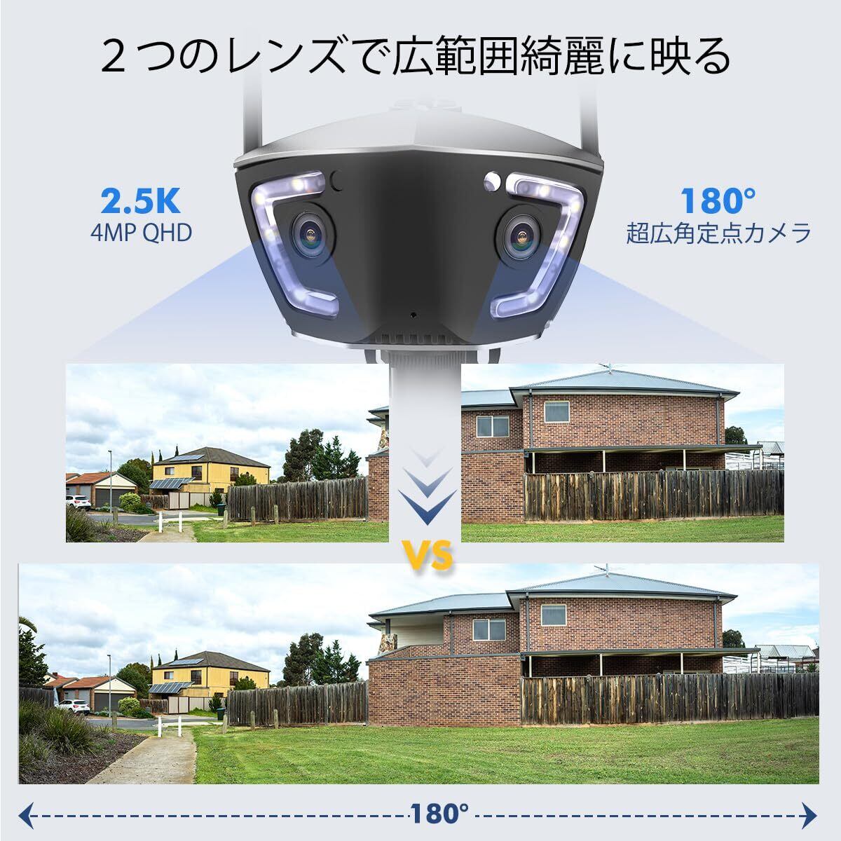 【特価セール】【180°超広角】 Ctronics 防犯カメラ 屋外 死角なし ダブルレンズAI検知 人・ペット・車両検知 スマート暗視 5GWi-Fi FTP/ONVIF/NVR/NAS対応 4MP 2.5K スマホ・PC遠隔操作 家族映像共有・通話 簡単に増設 一元管理 IP66防水 LANケーブル付属 128GB Mirco SDカード対応(別売り) クラウドストレージ対応