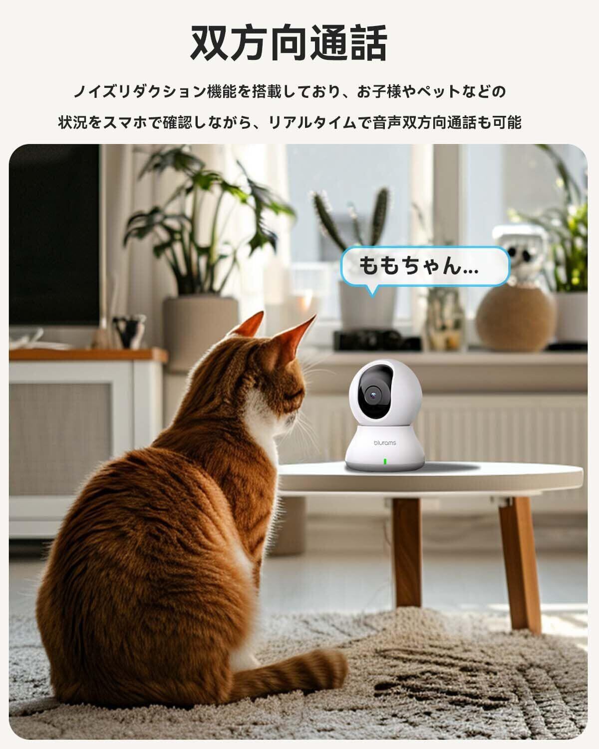 【2.4と5GhzWiFi対応・300万画素】見守りカメラ 防犯カメラ ペットカメラ blurams モーション/音声検知 自動追尾 PTZカメラ 警報通知 双方向会話 遠隔操作 犬/猫/赤ちゃん/高齢者介護カメラ 室内/玄関/店用 3年保証
