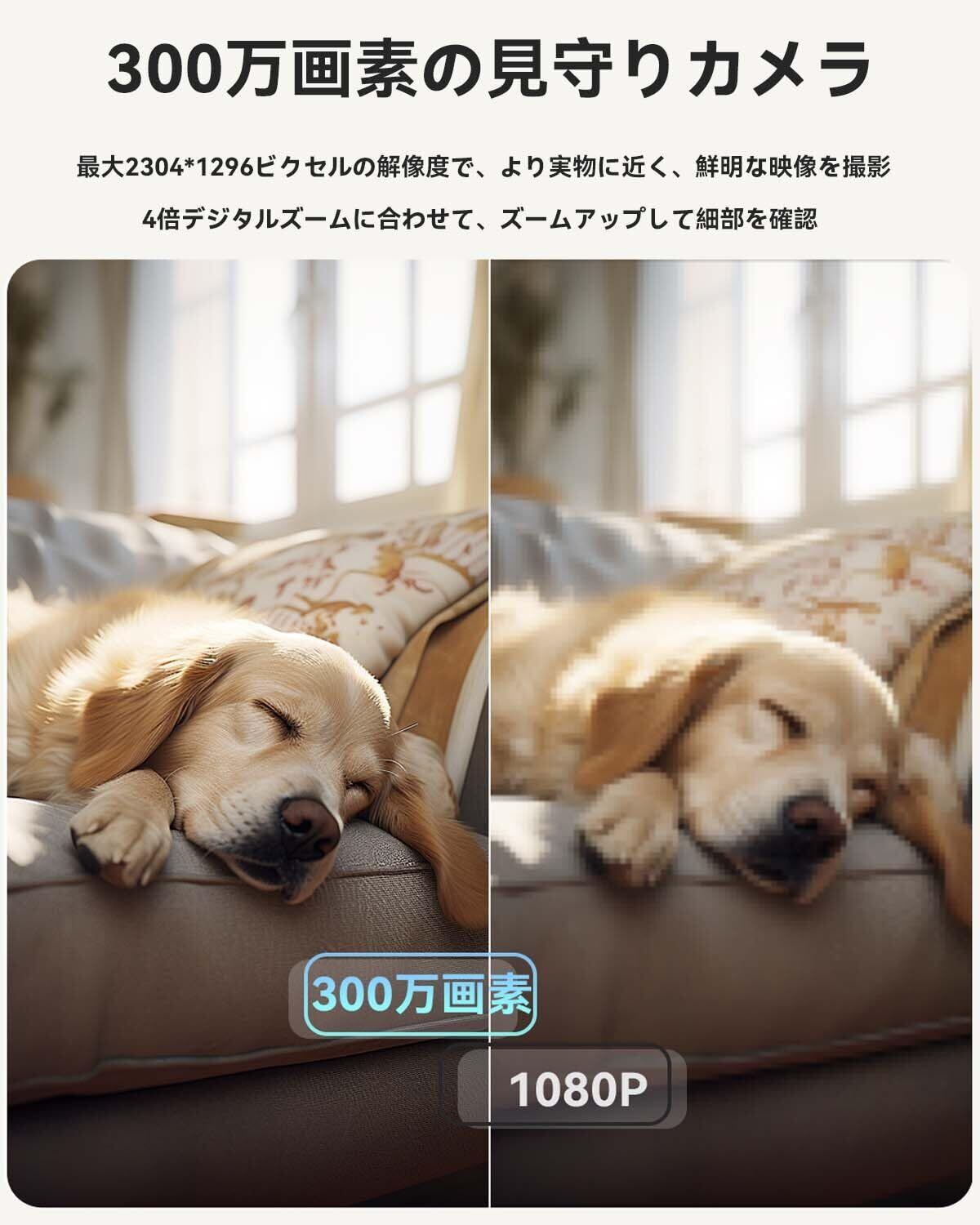 300万画素・ブランド信頼:①3.6 mmレンズと高性能CMOSセンサーを搭載して、300万画素(2304x1296)を実現します。従来の1080Pカメラより解像度がアップされます。赤ちゃん、ペットや高齢者などの対象者に日常的なリアルタイム見守りが可能になります。②暗号化技術を採用して、記録したビデオはお客様だけアクセスすることができます。データの転送がより安全になり、ユーザーのプライバシーを保護します。③日本市場に初進出しましたが、欧州や米国など多くの国で販売されております。③ブランドの信頼性と3年間の保証。