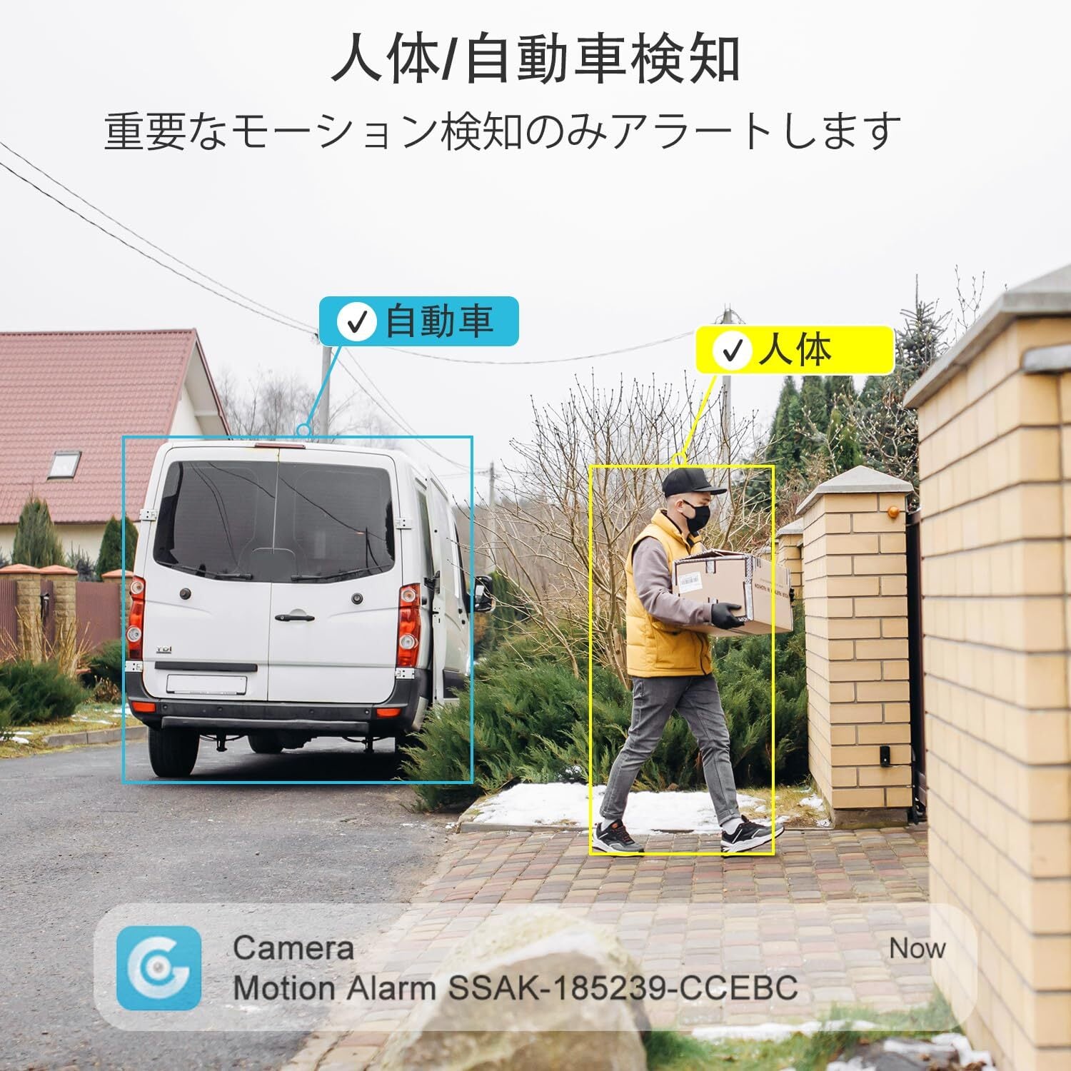 【人体、自動車、動物検知】AI人体検知技術と計算方法によって、人体の形を検知されて、警告は反映しています。誤警報を有効に減らせます。無駄な警告に煩わされません。AI人体認識の設定方法はとても簡単です。素人でも写真を参考して、分かりやすいです。