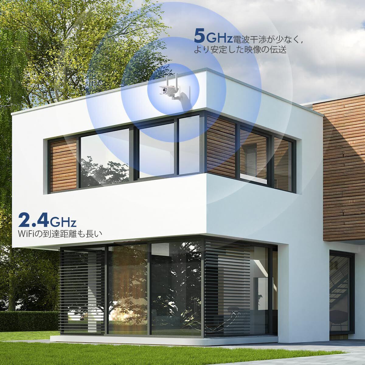 【高速かつ安定な通信】 有線LAN接続(ケーブル付属)と無線接続とも可能です。5DBiアンテナを使用して、5GWi-Fi対応なので、高速かつ安定した通信が確保されます。動画の24時間撮影、過去の動画確認(日付・時間管理)、外出先からリアルタイムで映像確認が便利です。
