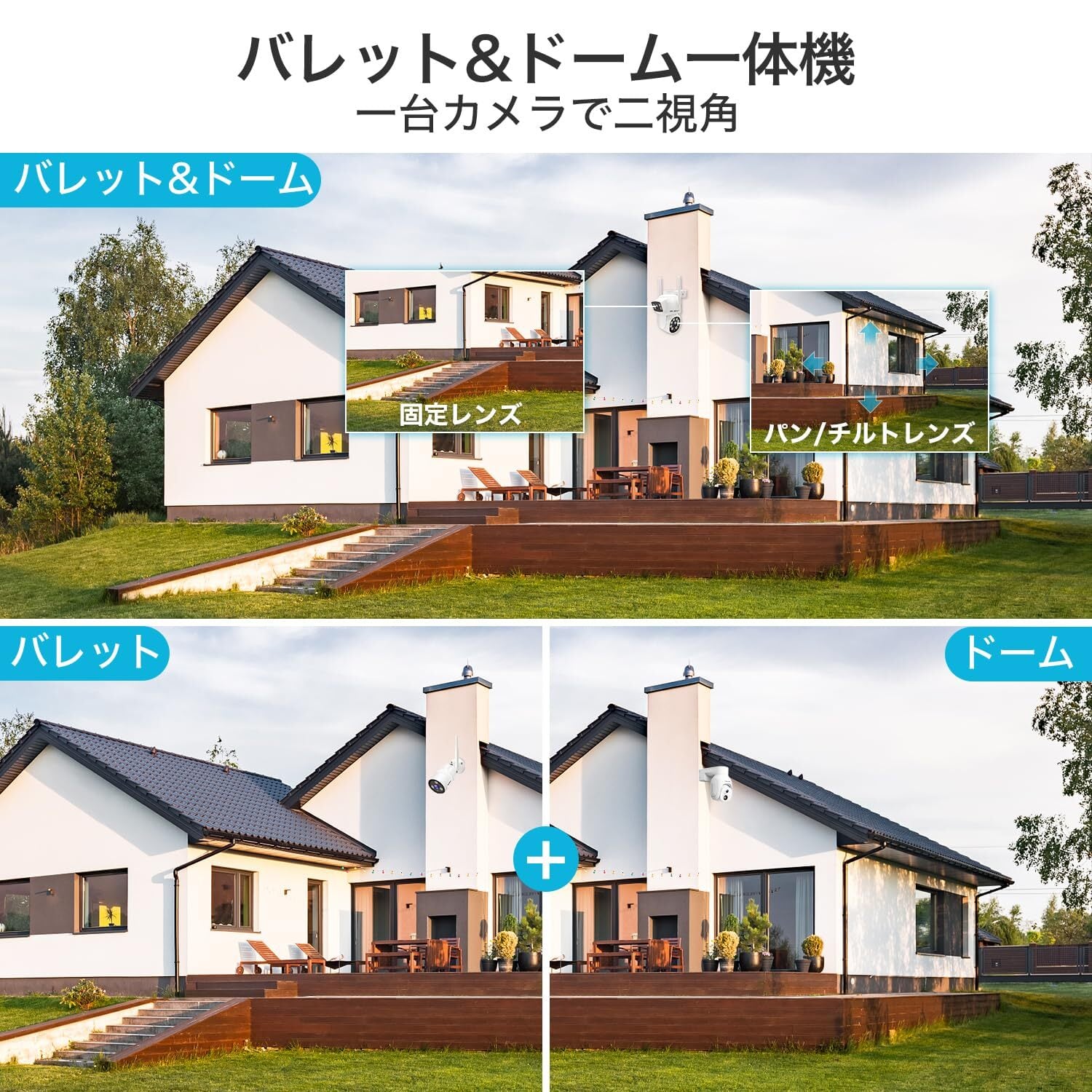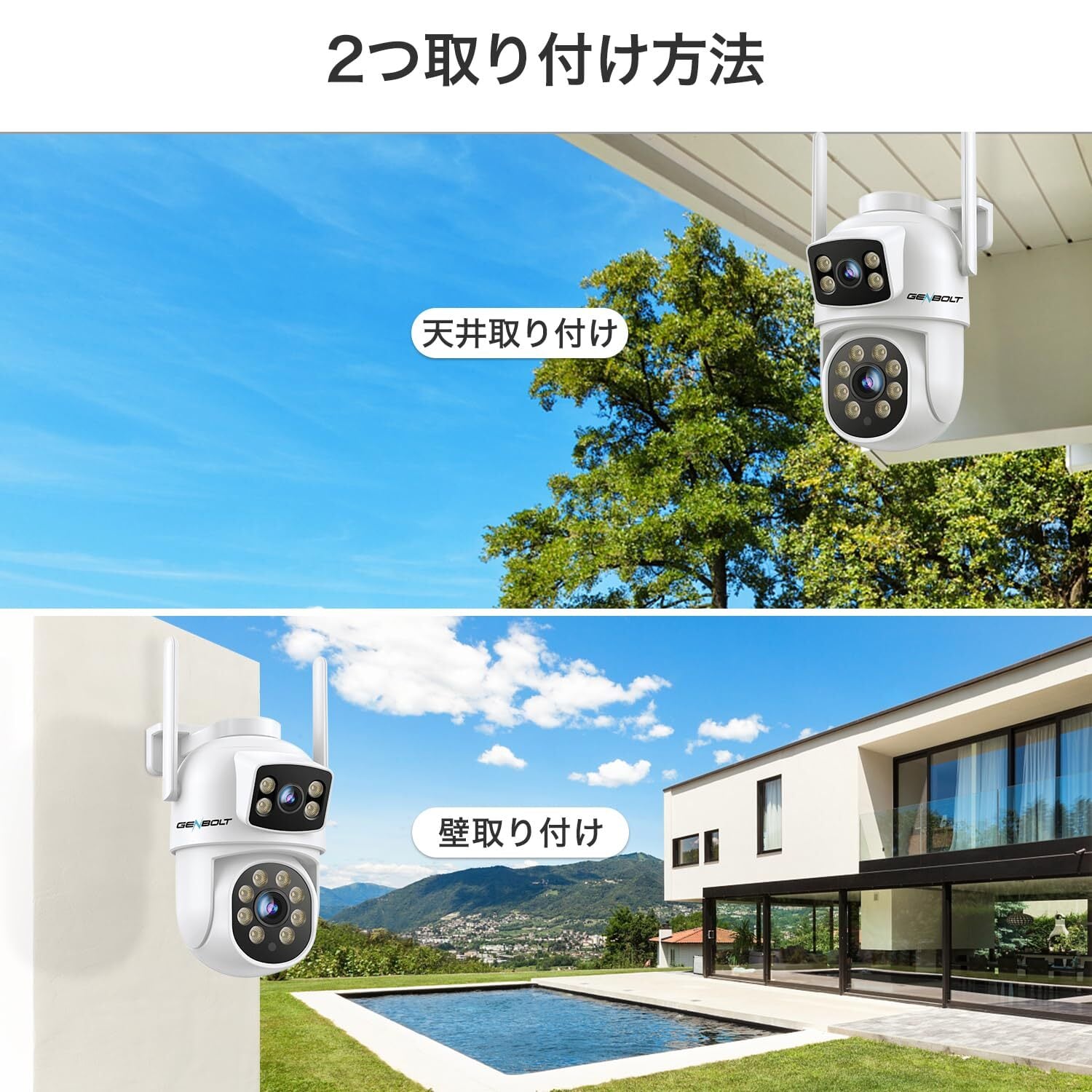 【一台カメラ+二つ監視画面】GENBOLT 屋外 監視カメラは上部固定カメラ+下部PTZドームカメラ。死角なし2画面で監視できます。上の固定視野カメラ、監視範囲がより広いです。下のドーム型PTZ回転カメラは人体を検知して追跡できます。一台カメラの価格で二台の監視カメラを入手できます!