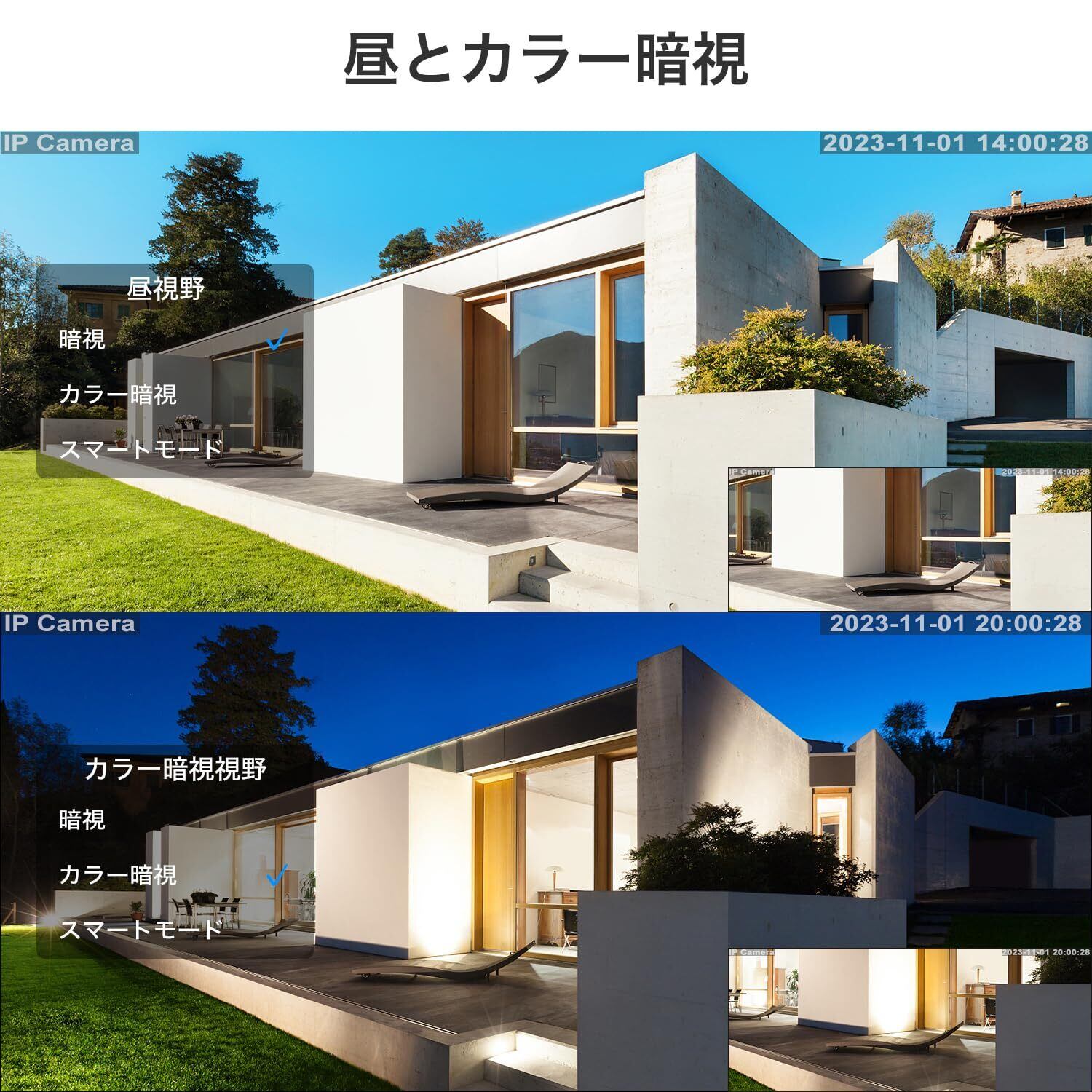 【POE給電可能+録画保存】POE 防犯カメラは設置場所によって、2種類給電モードをサポートします。1.POE給電:スイッチングハブを使用して、NVRとコンセント不要 CAT5ネットケーブル一本で直接電源とネットワークを接続できます。コンセント無くでも、取り付け可能です。最大200メートルサポート可能です。2.DC給電:電源アタプター使用して通常な給電モードもサポートします。(スイッチングハブ別売:B0BKPY6WC5)録画保存:24時間常時録画、スケジュール録画、動体検知録画3つ録画モードを設定できます。超ビデオ圧縮技術により、低容量でも高画質をみることができます。32/64/128GBのマイクロカードをサポートします。