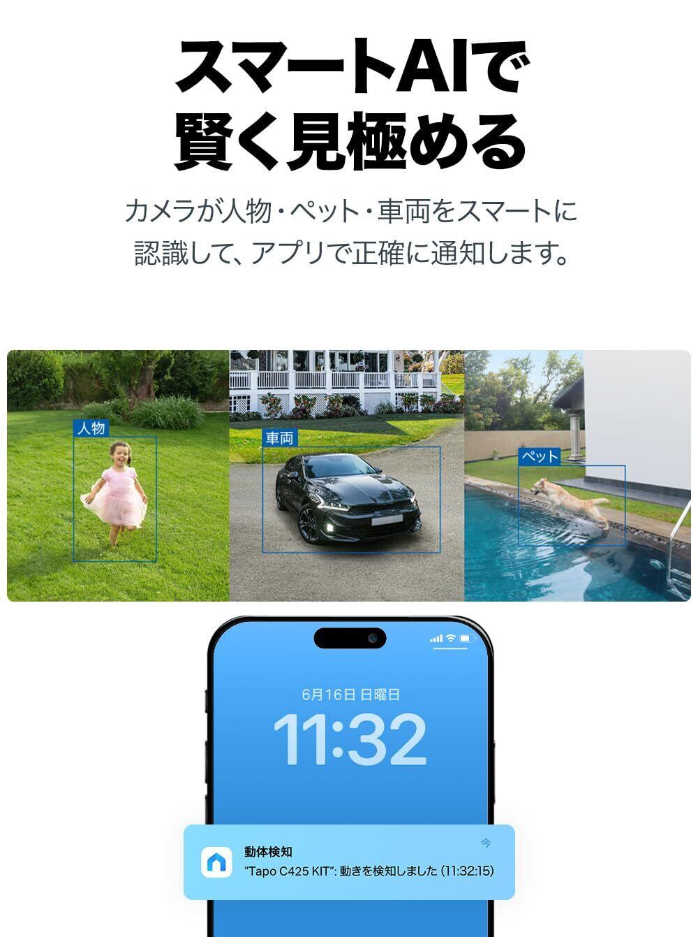 TP-Link Tapo 防犯カメラ 屋外 ソーラー 見守りカメラ Wi-Fi フルワイヤレス 充電式 2K QHD 4MP IP66 防水防塵 フルカラーナイトビジョン スマートAI検知 マイク スピーカー 搭載 Alexa/Google Assistant 対応 【小型ソーラーパネルマウントキット】 Tapo C425 KIT