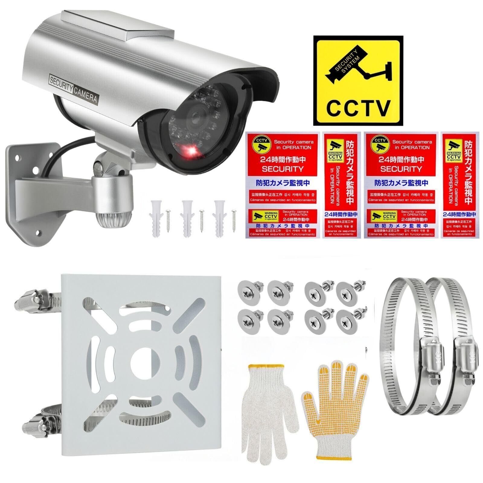 【在庫セール】【TVタックルで紹介されました】 防犯カメラ ダミー 【 防犯設備士監修】ソーラー LED 5ヶ国語対応 防犯ステッカー 防水 ダミーカメラ 監視カメラ 【防犯ブランド ピカジャケ】 (シルバー [取付金具付きフルセット]) | paghag