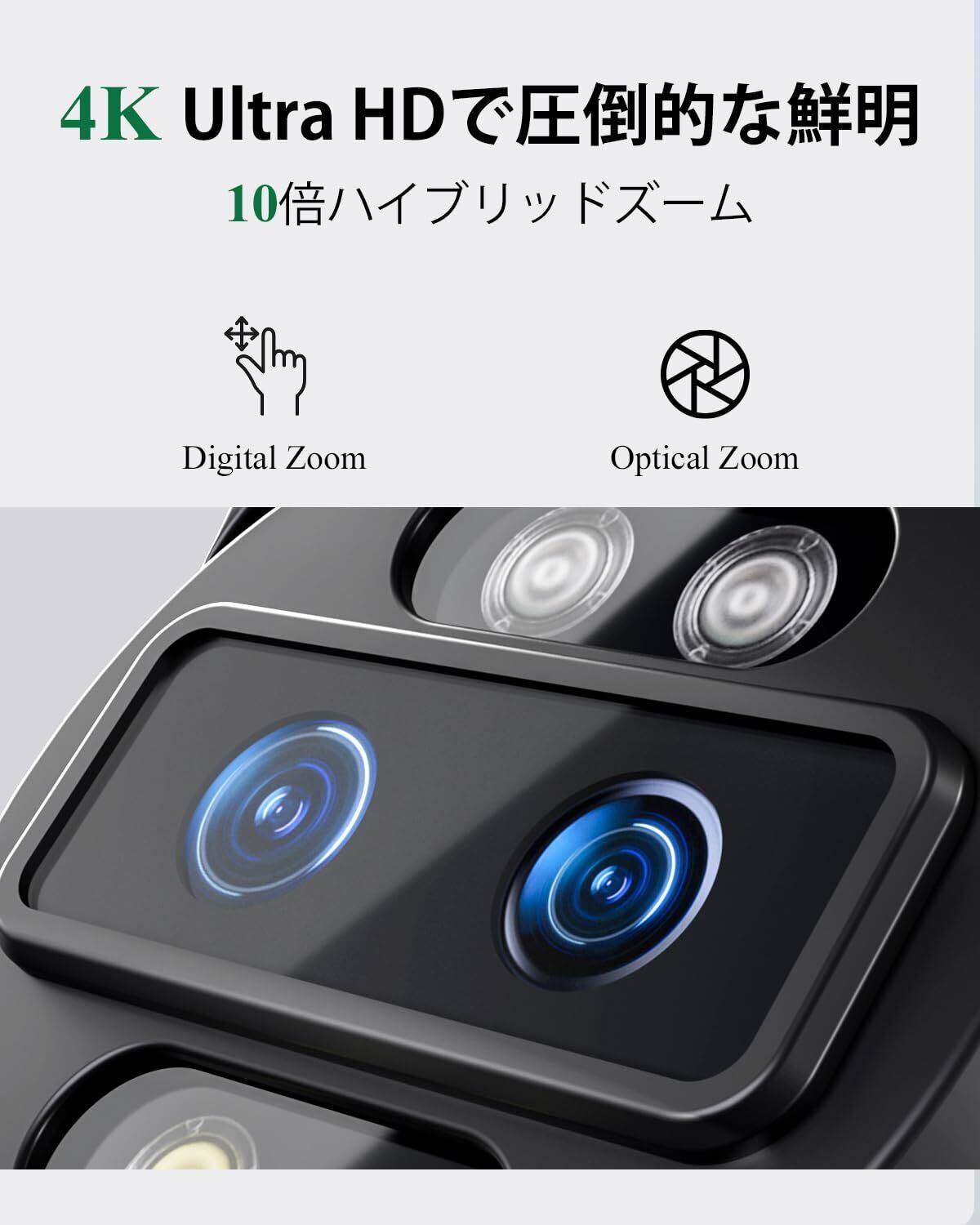 Ctronics 4k 防犯カメラ 屋外 10倍ハイブリッドズーム 5GHzWi-Fi 人/ペット/車両検知 自動追尾 オートフォーカス PC遠隔操作 赤青アラームライロ搭載 声光威嚇 24時間録画 FTP/NVR/NAS 256GBMirco SDカード対応(別売り)プリセット機能 スマート暗視 クラウドストレージ対応 家族共有LANケーブル/防犯ステッカー付属