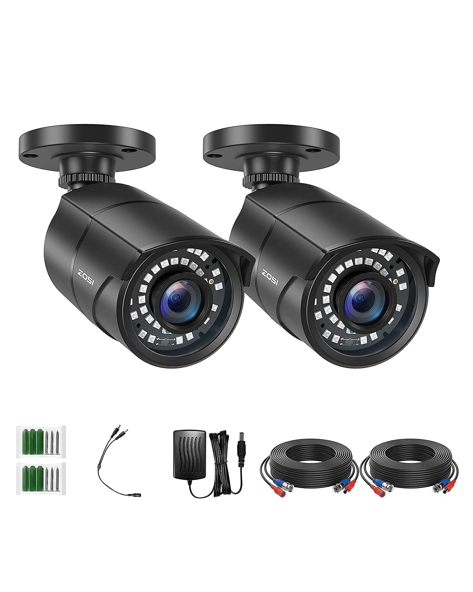 ZOSI 200万画素防犯カメラ監視カメラ2台セット フルハイビジョン 屋外防犯カメラ 赤外線搭載 3.6MM固定レンズ 暗視機能 IP67防水カメラ 金属製