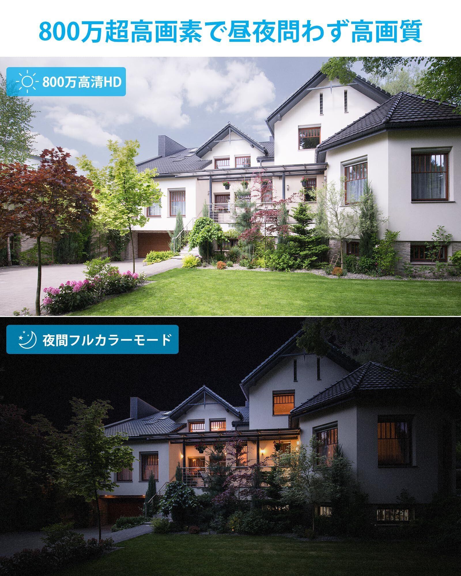 【スターライトナイトビジョン】カメラには4K超高解像度と高性能スターライトセンサーが搭載されており、鮮明な細部を捉えることができ、夜の色の世界を体験できます。