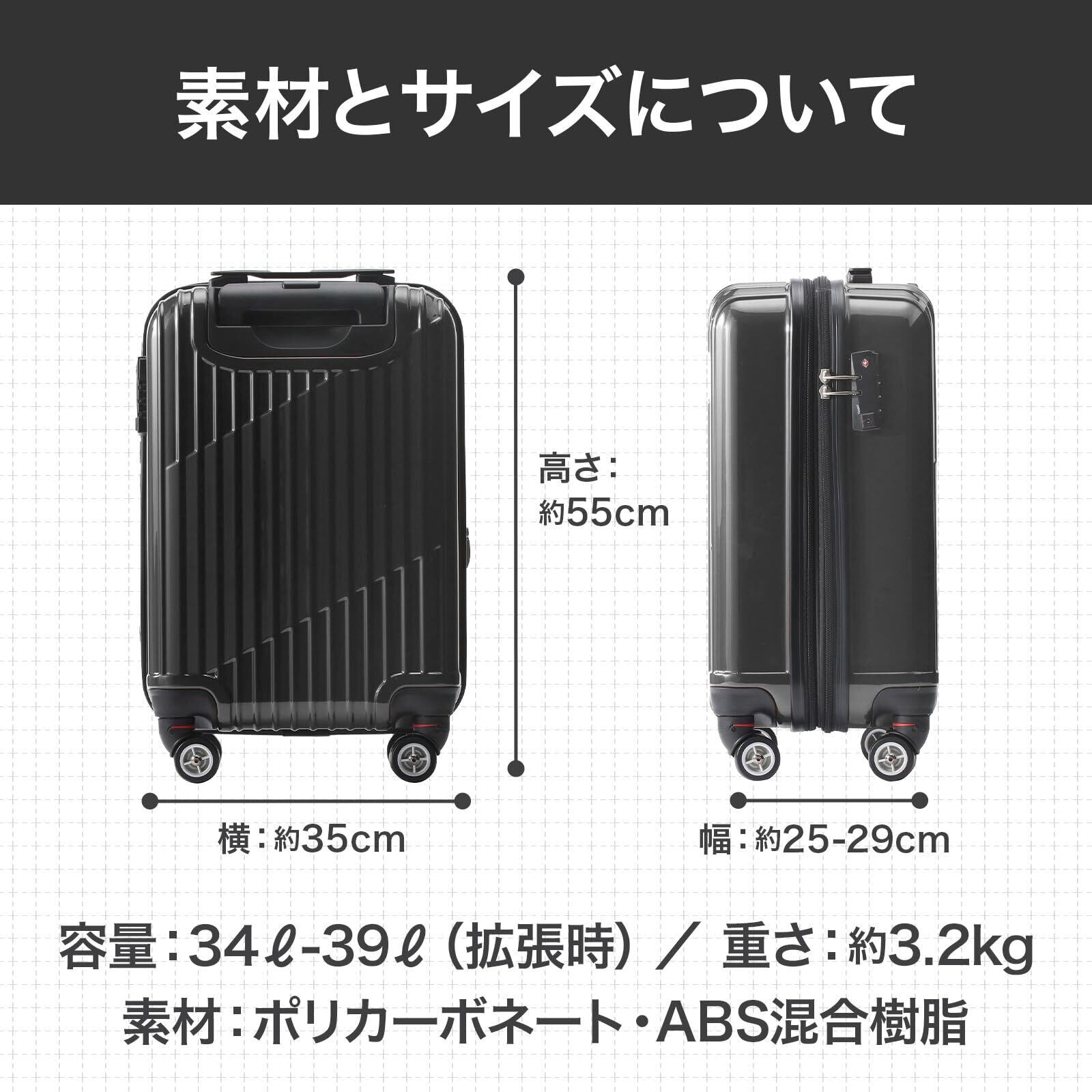 [エース] スーツケース クレスタ エキスパンド機能付 機内持ち込み可 39L 48cm 3.2kg 06316