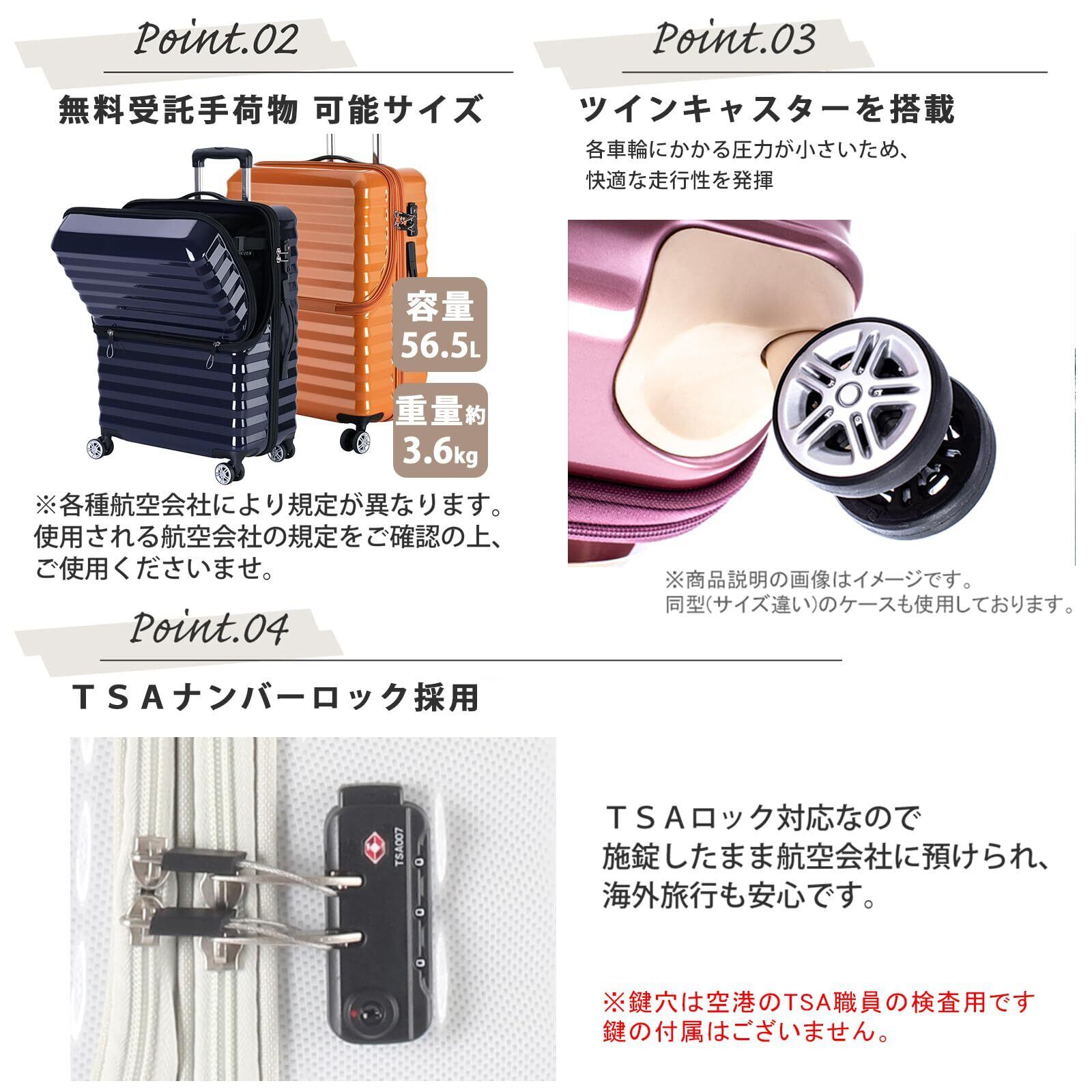 [アクタス] スーツケース キャリーケース フロントオープン 機内預入可能 56.5L 63cm 3.6kg