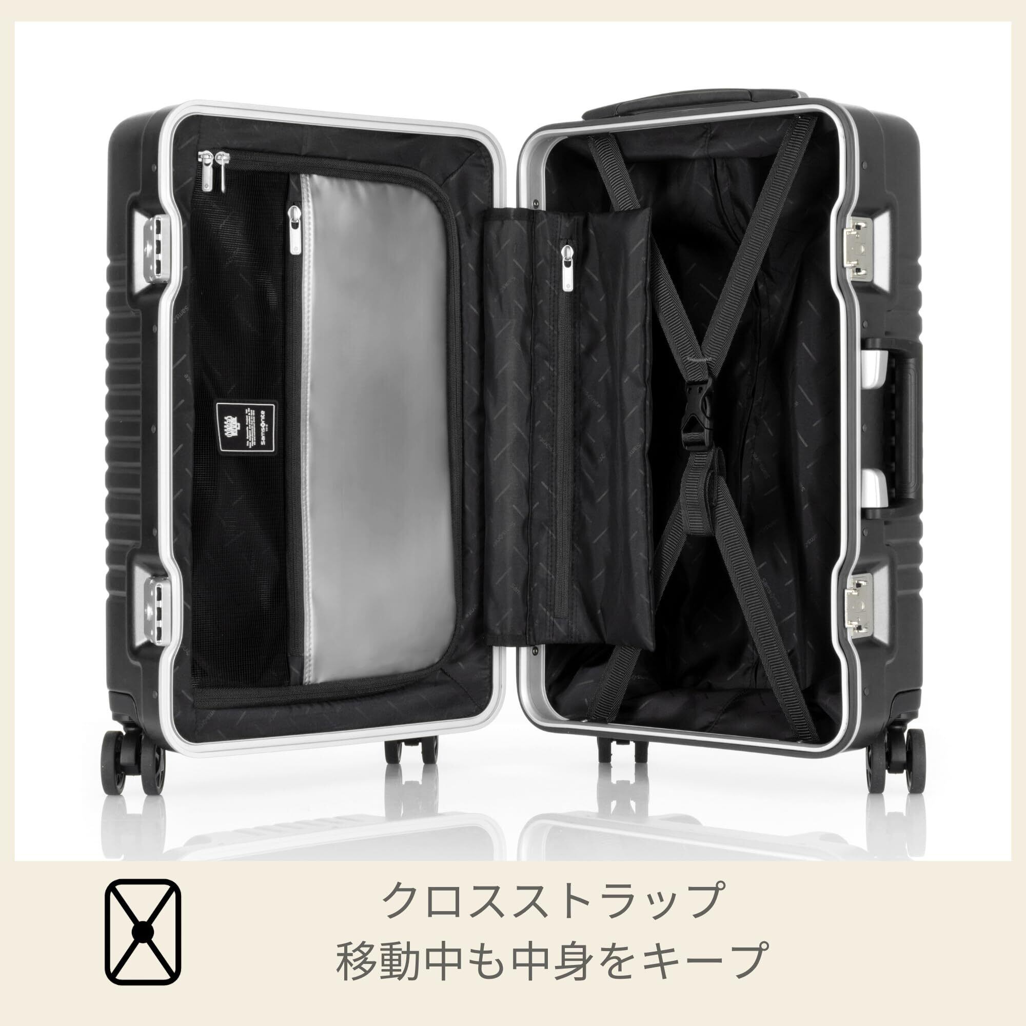 ■ウェットポケット付きのディバイダーと荷崩れ防止のクロスストラップを装備した内装