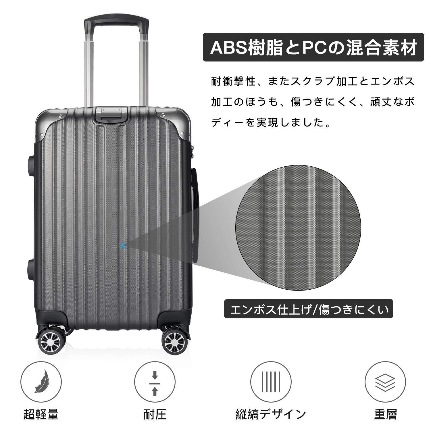 【表面素材】スーツケースはABS樹脂とPCでの混合素材で作られ、耐衝撃性に優れています。エンボス加工、傷つきにくい。縦縞デザインにより、シンプルかつファッションです。超軽量で、女性でも楽々に持ち出かける人気なキャリーケースです。便利な鍵式へグレードアップ。TSAロックが搭載され、鍵が2本付属しており、面倒なダイヤル設定が不要。