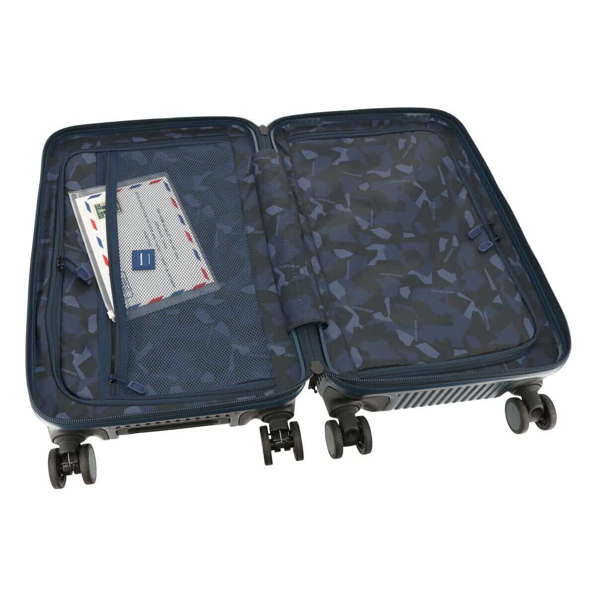 フロントポケット、TSAダブルダイヤルロック、ブレーキシステム、消音双輪キャスター、サイドハンドル、ボトムハンドルと多機能でありながらスタイリッシュなコインロッカーサイズケースです。3ルーム収納方式で、ビジネスでもプライベートでも用途に合わせた収納が可能。また、フロントポケットはワイドオープン仕様で、省スペースで収納も可能です。