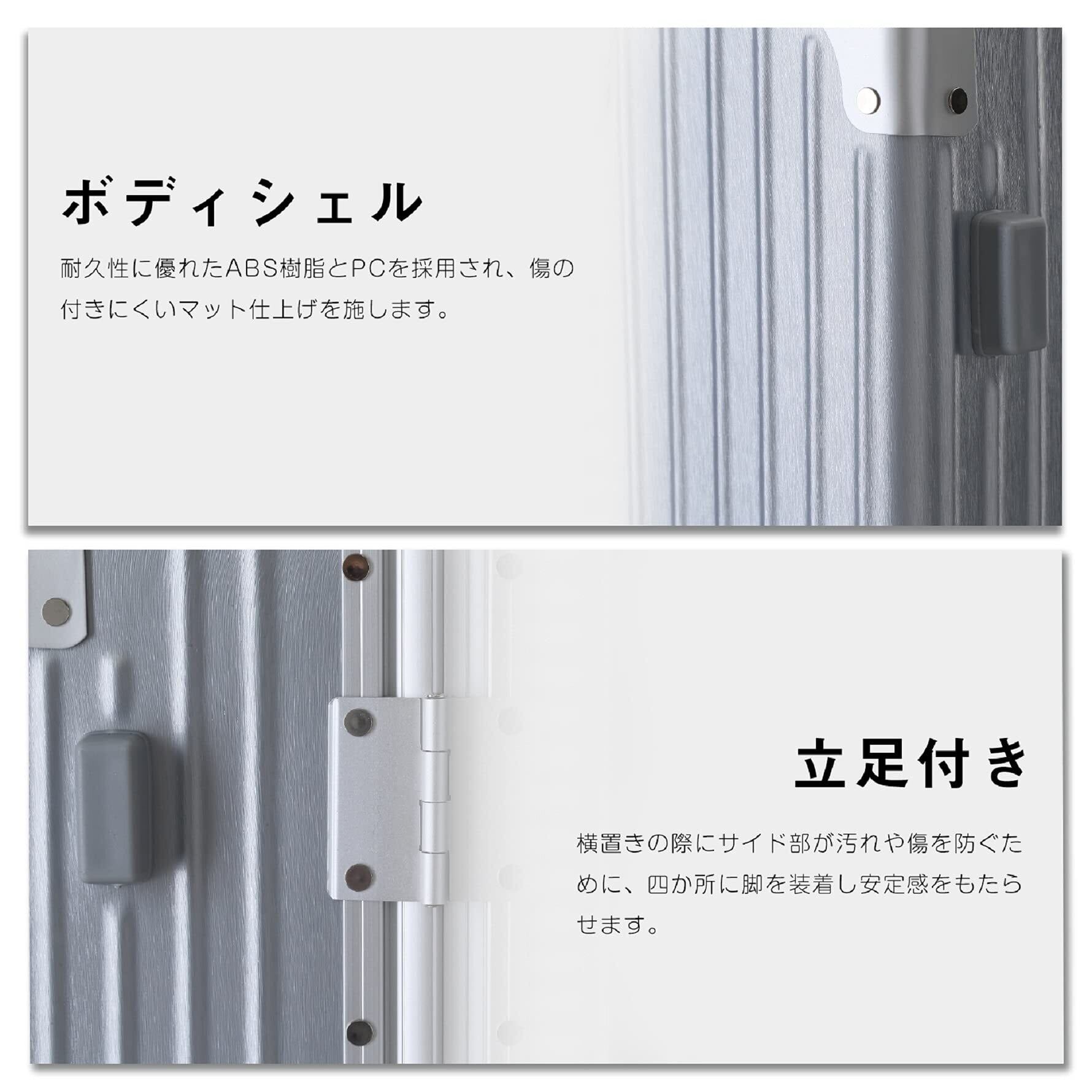 【細かいなマット仕上げ加工】細かいなマット仕上げ加工のスーツケースは、高級感がありつつもシックで上品な印象を与えます。また、耐久性に優れており、長期間使用しても傷が目立ちにくいです。