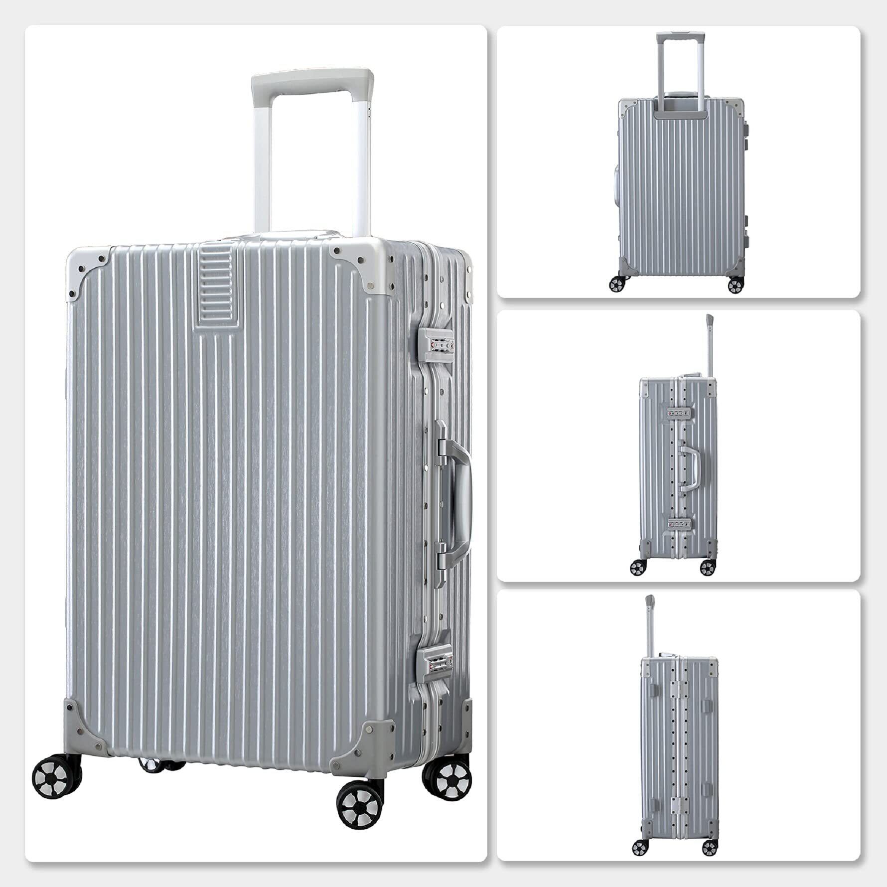 【2022最新】[タビトラ] スーツケース キャリーケース アルミフレーム 大型 レトロ 四角 静音 TSAロック 傷が目たちにくい シルバー S