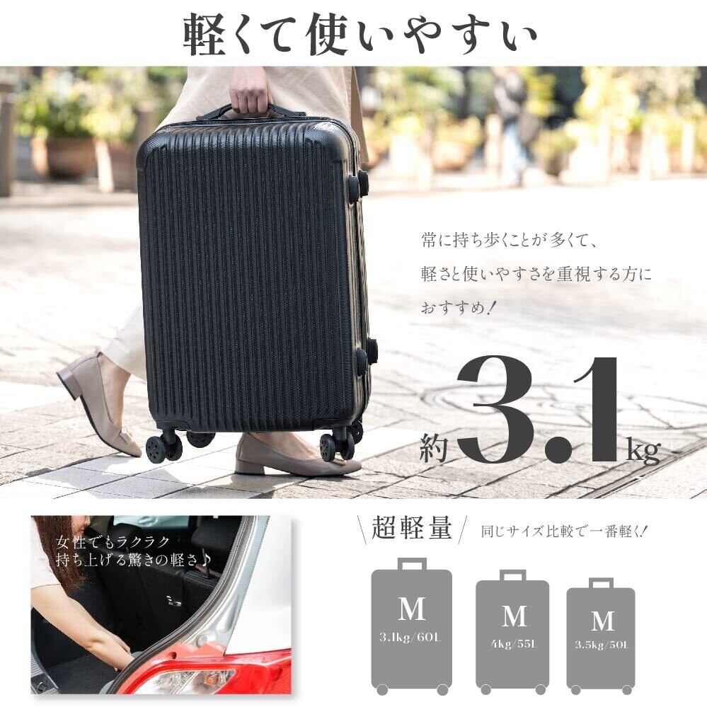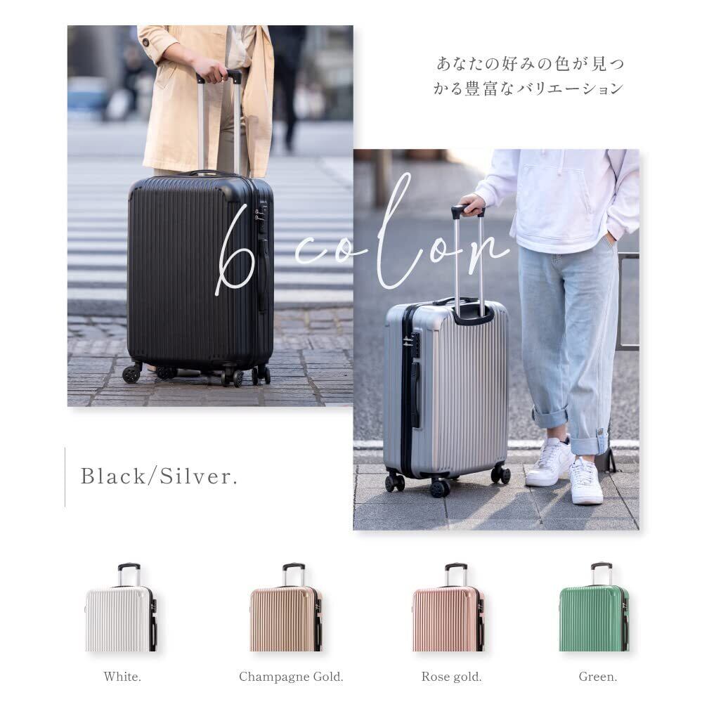 [チアキストア] スーツケース キャリーケース キャリーバッグ Mサイズ 大容量 大型 超軽量 静音 360度回転 ダブルキャスター TSAロック搭載 PC材質 耐衝撃 旅行 ビジネス 出張 ck-sc101-24-sv