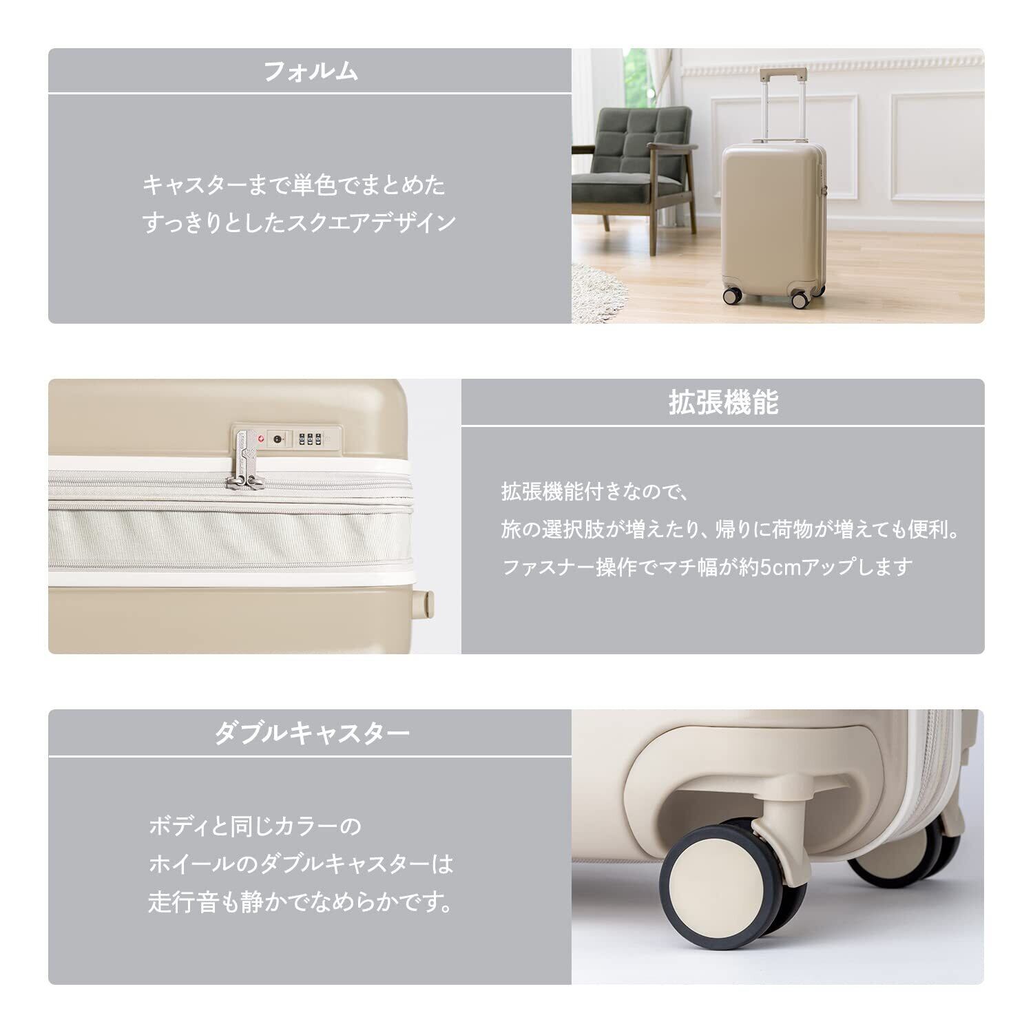 ファスナータイプで軽量、拡張機能付きなので、旅の選択肢が増えたり、帰りに荷物が増えても便利。