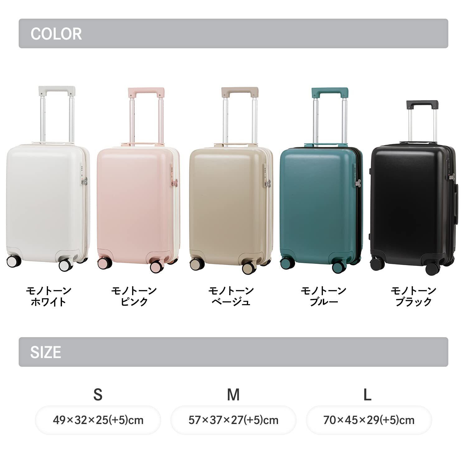 [レジェンドウォーカー] スーツケース キャリー ファスナー 軽量 Lサイズ (拡張機能付き/ダブルキャスター (82~96[MONOTONE/ベージュ]<5520-70-BE>