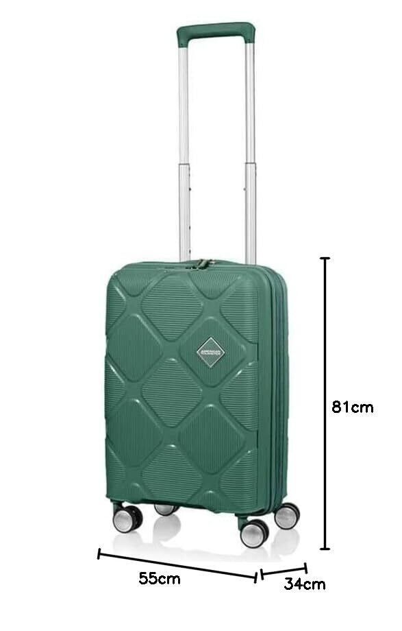 軽量で拡張可能なアメリカンツーリスターのスーツケース。ハードシェルでインラインスケート型の4つの車輪、コンビネーションロック、キャリーハンドル、伸縮可能なストラップを備えています。ポリエステル製で、水に対する耐性があり、2つのポケットが付いています。機内持ち込み可能なSサイズとMサイズが用意されています。