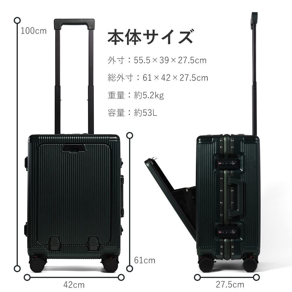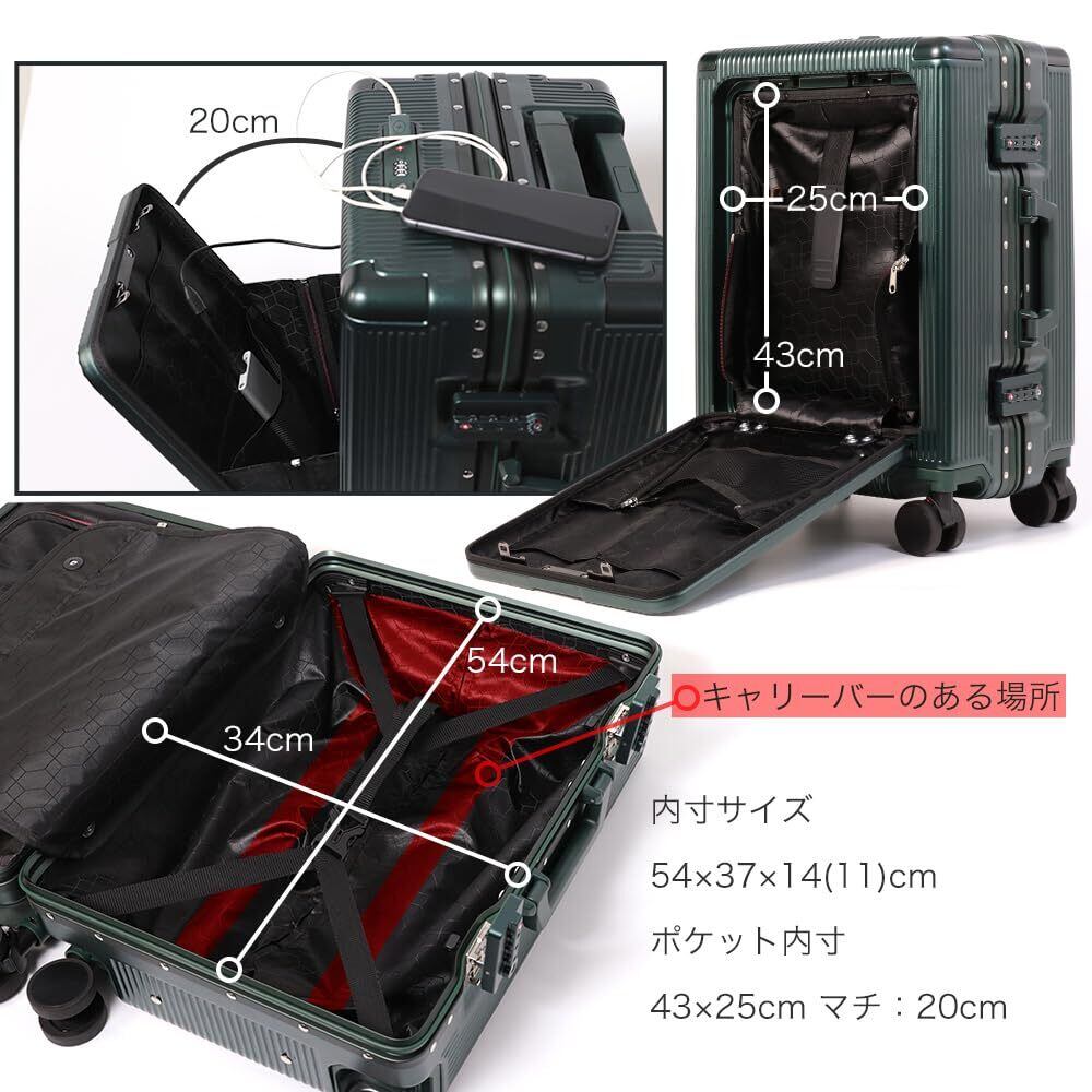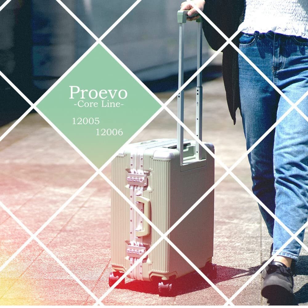 [プロエボ] スーツケース フレームキャリー 前ポケット 受託手荷物 S M 静音 ダブルキャスター 8輪 大容量 軽量 アルミフレーム TSAロック キャリーケース キャリーバッグ (アイスグリーン/M)