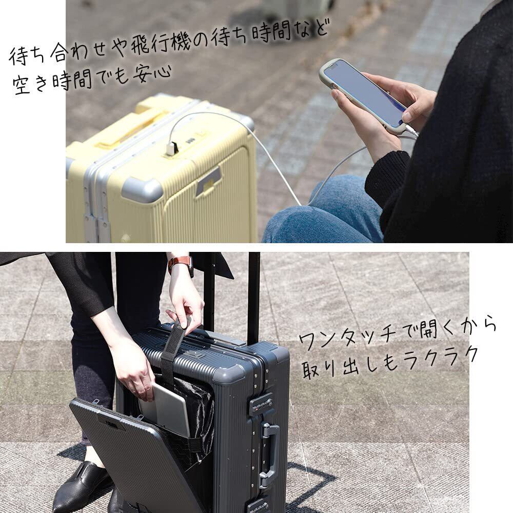 【USB充電ポート】TSAロックにはUSB type-Aとtype-Cの充電ポートを搭載。お手持ちのポータブル充電器とケーブルを使って移動中の待ち時間などちょっとした時間にスマートフォンやタブレットなどの充電が可能です。ポートも二種類搭載しているので様々な機種、企画に対応しています。
