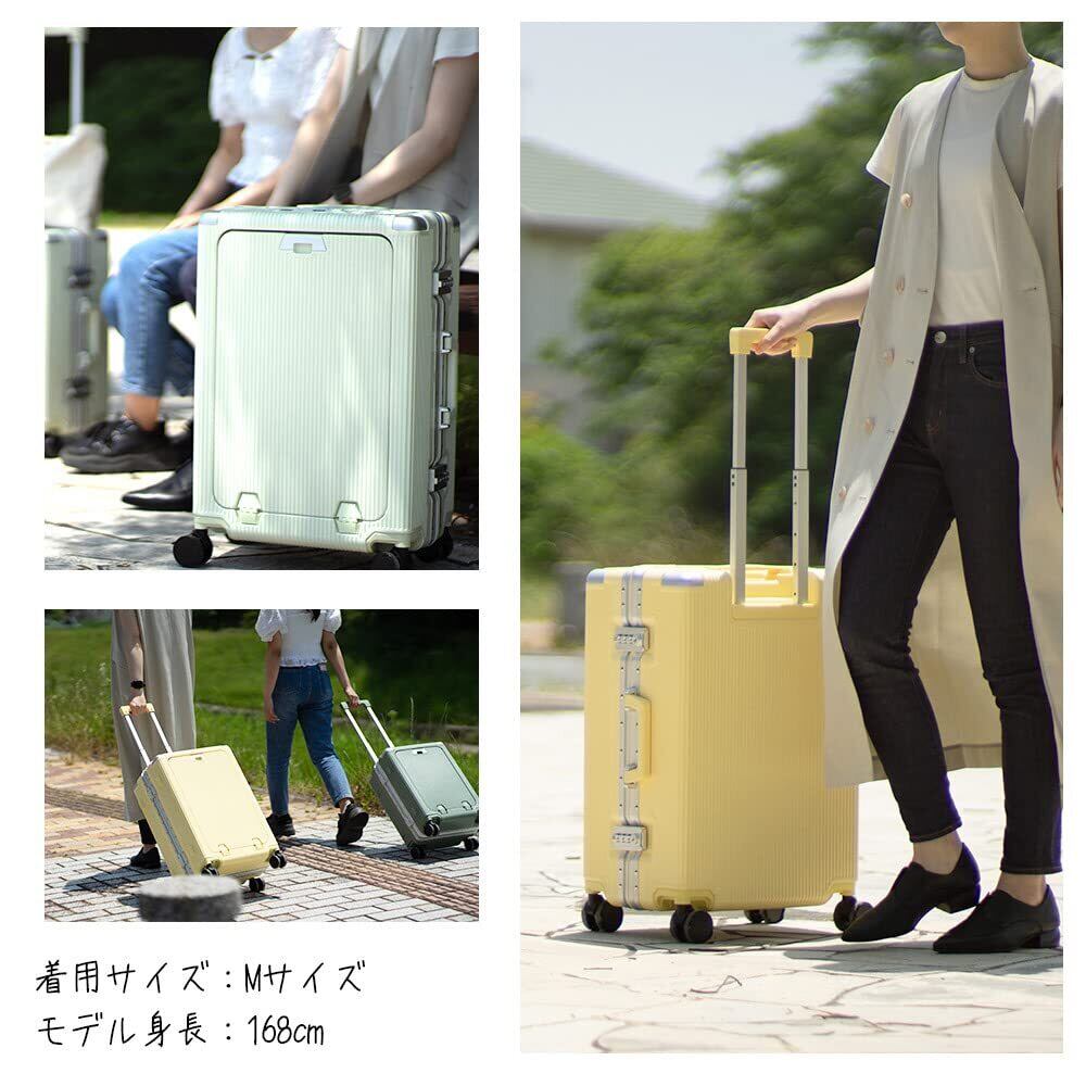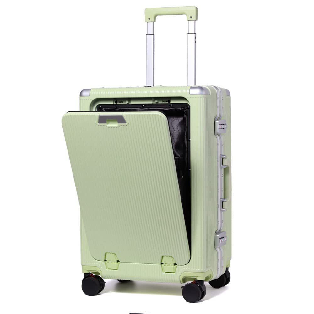 【新春セール】[プロエボ] スーツケース フレームキャリー 前ポケット 受託手荷物 S M 静音 ダブルキャスター 8輪 大容量 軽量 アルミフレーム TSAロック キャリーケース キャリーバッグ (アイスグリーン/M)