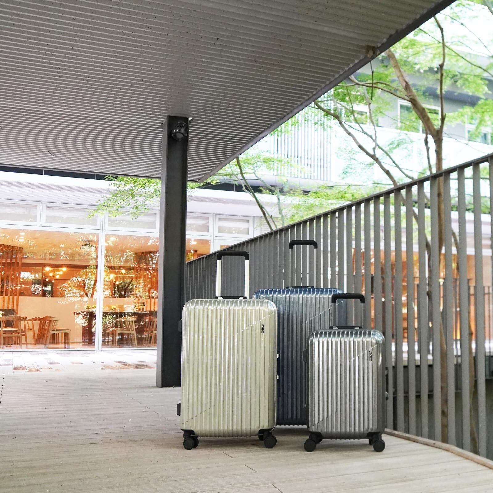 スタイリッシュなデザインのボディシェルとヘアラインの加工が施されたカラーが映える高級感のあるスーツケース。