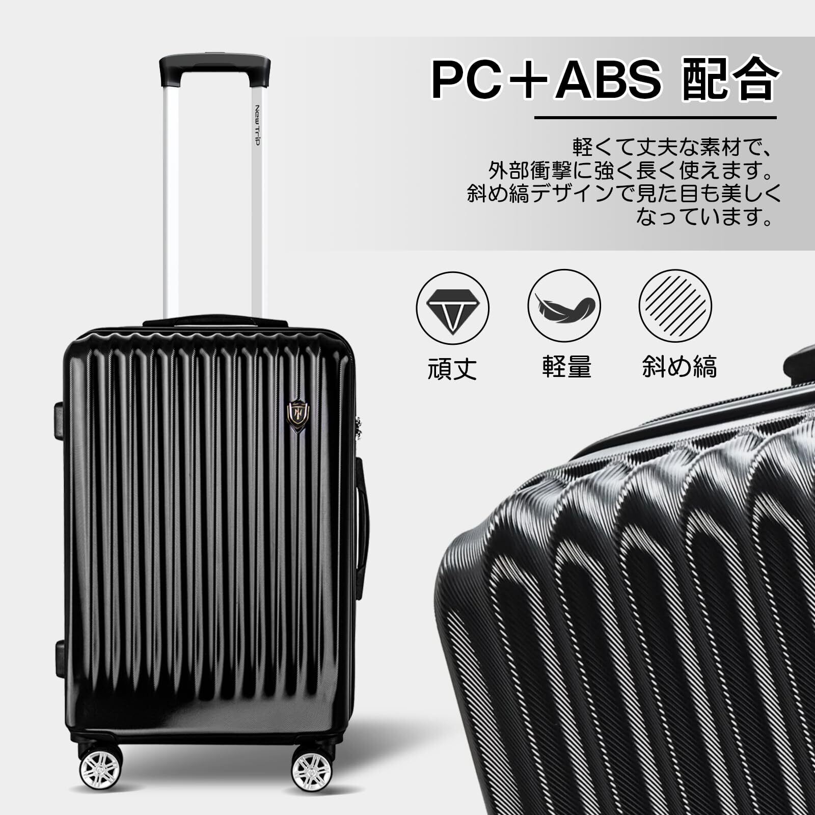 [New Trip] スーツケース キャリーケース 機内持ち込み 軽量 大型 S/M/Lサイズ キャリーバッグ 耐衝撃 大容量 ファスナータイプ 静音 ダブルキャスター TSAロック 海外 旅行 ビジネス 出張 (ブラック、Sサイズ/機内持ち込み:1~3泊/40L)