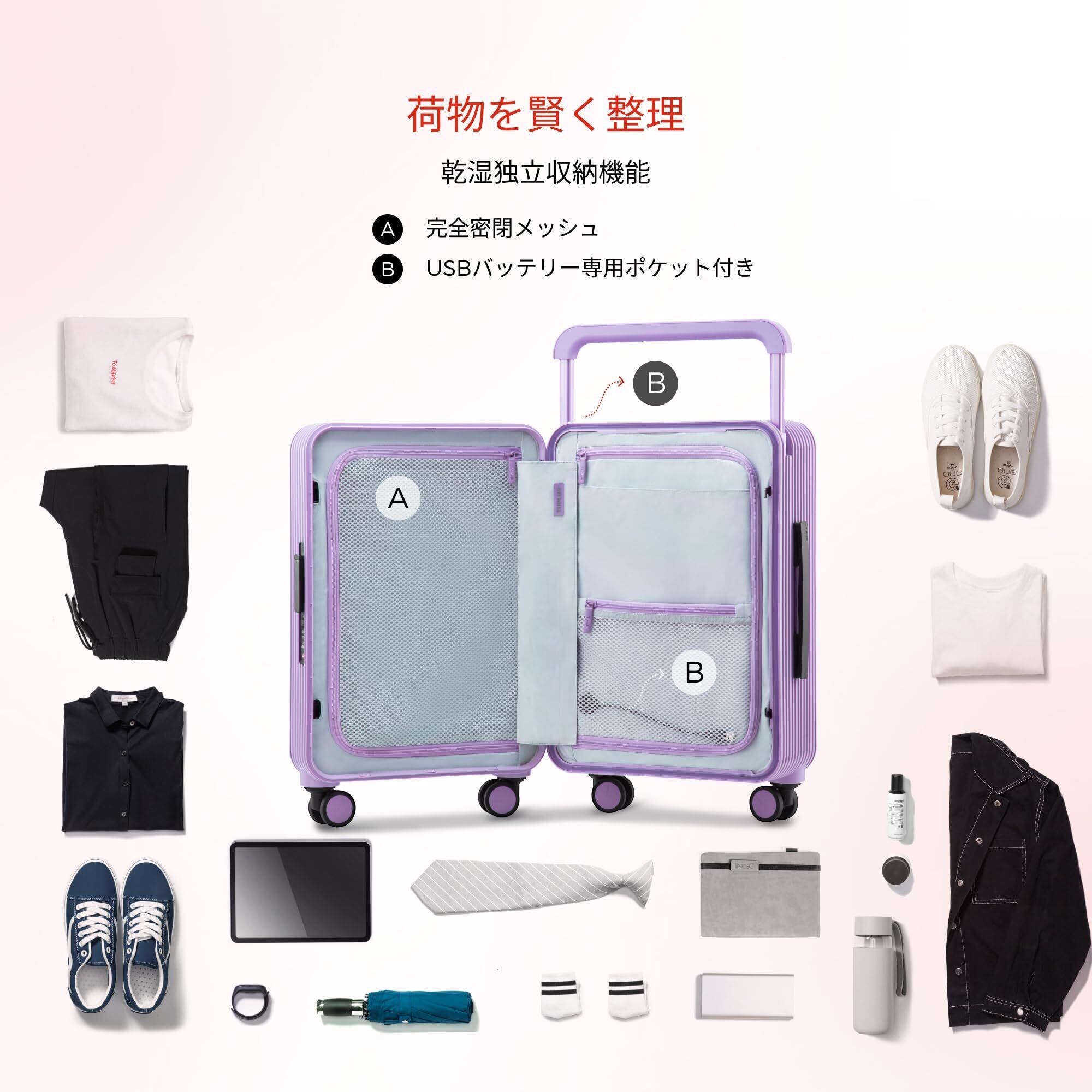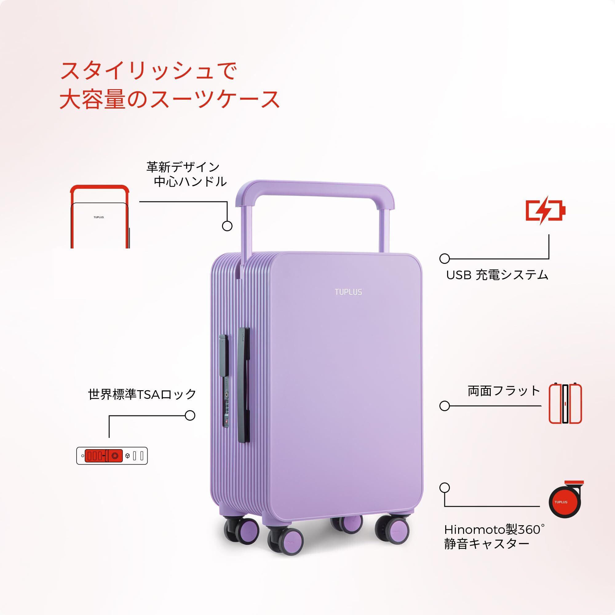 【新着商品】[TUPLUS] スーツケース 機内持ち込み キャリーケース 大型 耐衝撃 USBポート付き キャリーバッグ ABS+PC 静音 360度回転 旅行 ビジネス 出張 TSAローク搭載 (Sサイズ 33L パープル) | paghag
