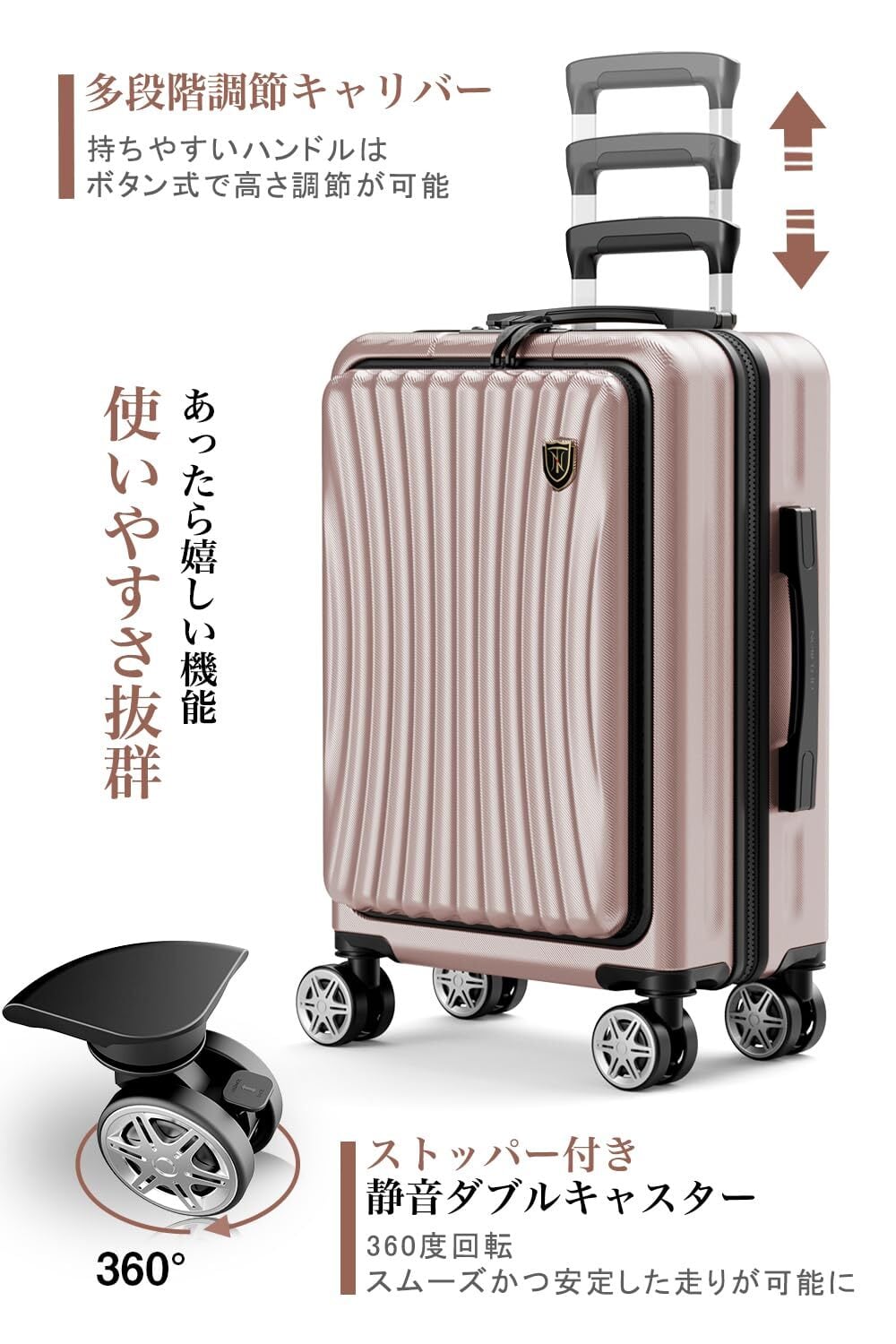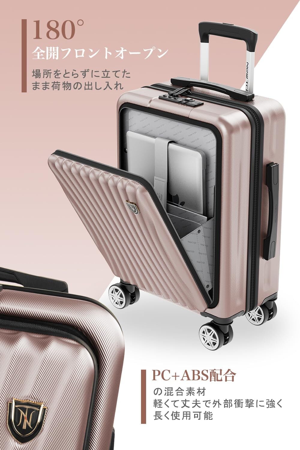【特価商品】[New Trip] スーツケース 機内持ち込み フロントオープン キャリーケース Sサイズ USBポート付き ストッパー付き YKKファスナー TSAロック 静音 ダブルキャスター ビジネス 出張 1-3泊 40リットル ローズゴールド | paghag