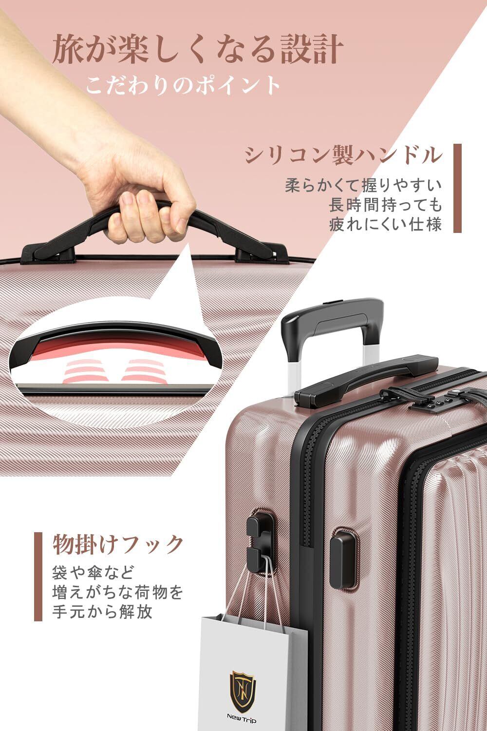 [New Trip] スーツケース 機内持ち込み フロントオープン キャリーケース Sサイズ USBポート付き ストッパー付き YKKファスナー TSAロック 静音 ダブルキャスター ビジネス 出張 1-3泊 40リットル ローズゴールド