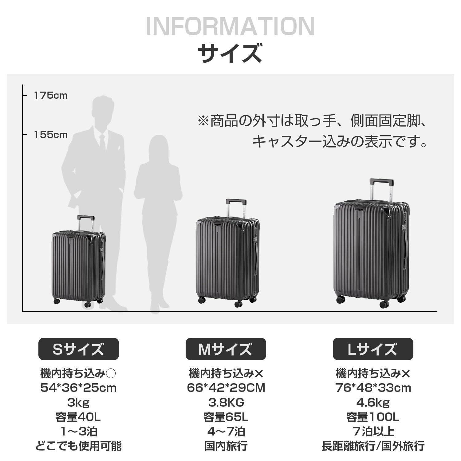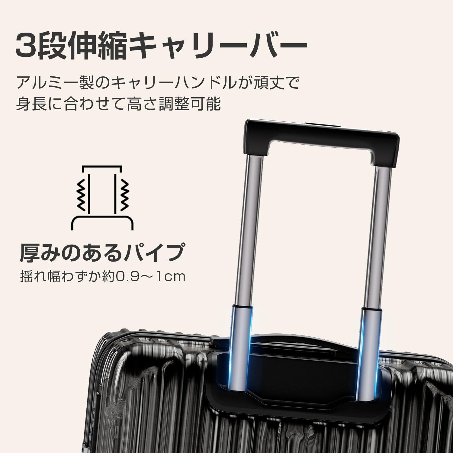 【1年間安心保証&アフターサービス】 商品到着後30日以内の破損・不具合には迅速対応いたします。返品・交換にも対応可能で、はじめてスーツケースをご購入される方も安心。ご注文前に必ずサイズをご確認いただき、納得の上でお選びください。