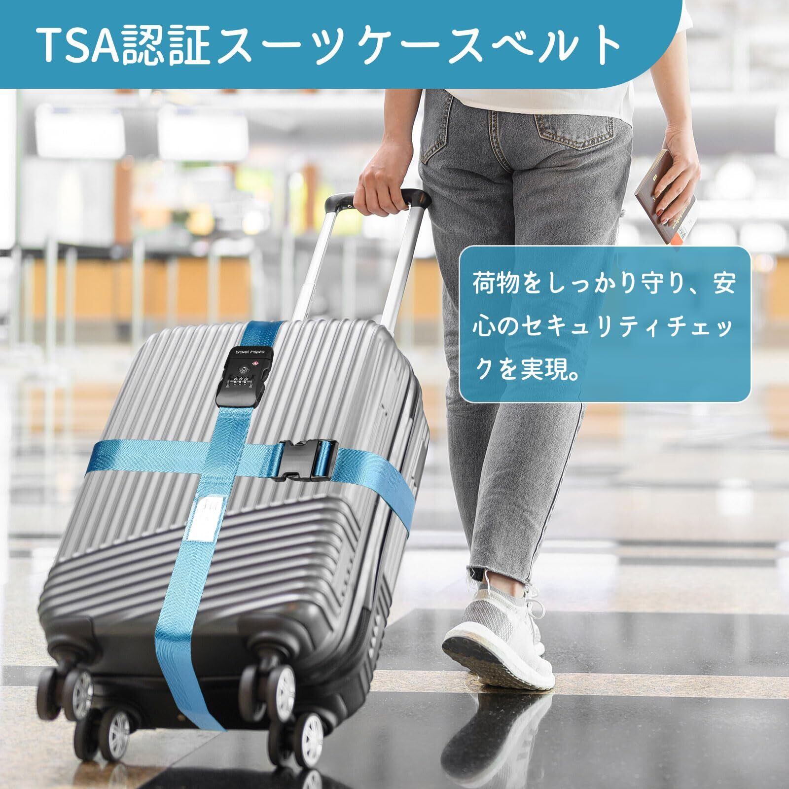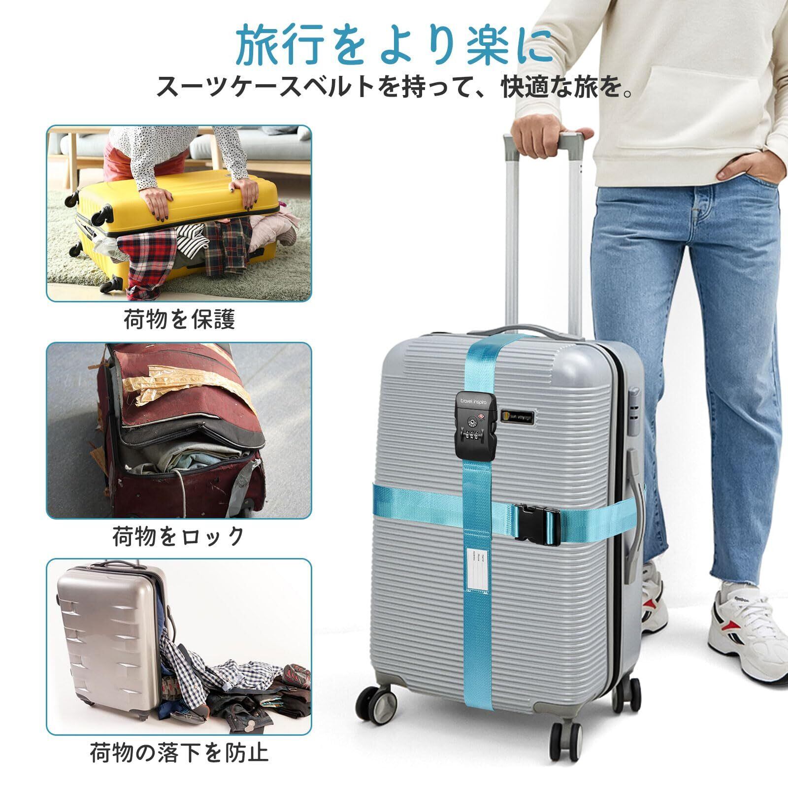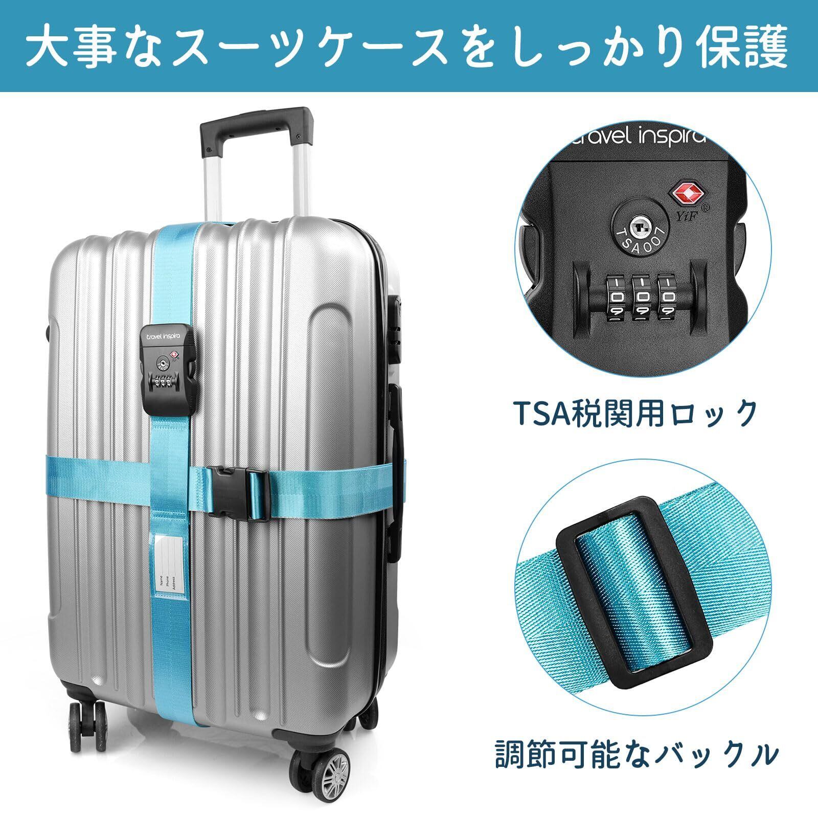 Travel Inspira スーツケースベルト 旅行 便利グッズ 荷締めベルト バンド 荷崩れ防止・調整可能 I字型 十字型 軽量 3桁ダイヤル式 固定ベルト ずり落ち防止 旅行/出張に最適
