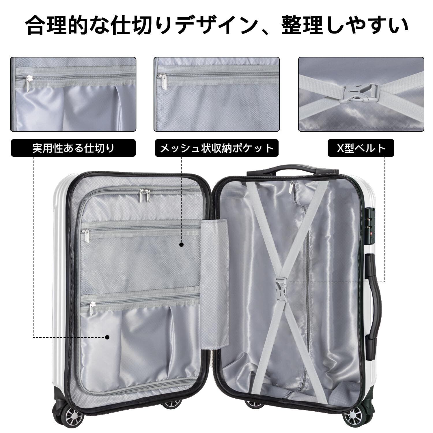 【材質&TSAダイヤル式ロック】スーツケースはABS樹脂とPCでの混合素材で作られ、耐衝撃性に優れた上、高弾性で、変形しにくい。エンボス加工、傷つきにくい。アルミフレームスーツケースより軽量で持ち歩きやすい。TSAダイヤル式ロックが搭載されて、外出がより安全。また、鍵穴は航空会社検査専用の物です。本製品に鍵は付属しておりません。
