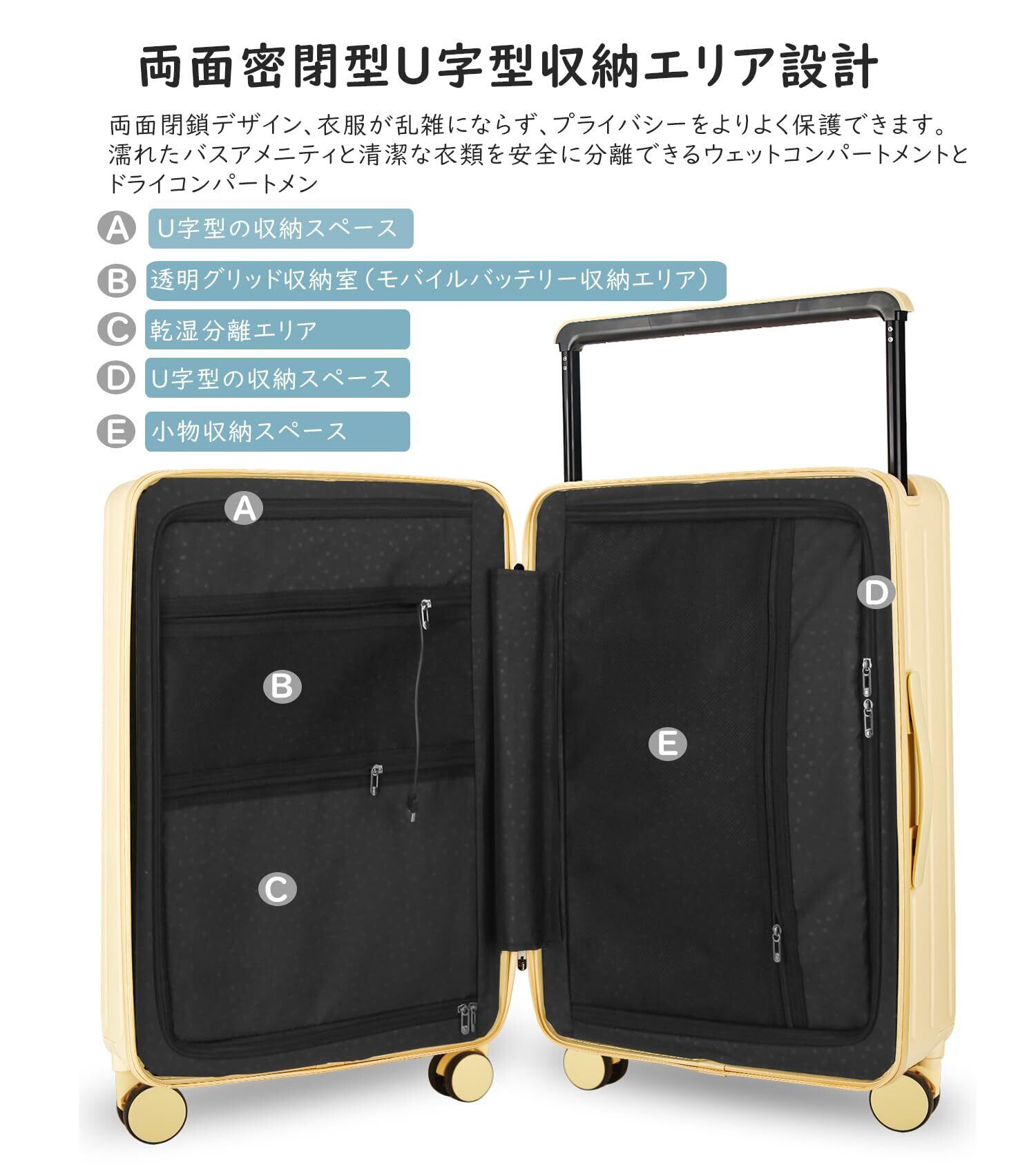 【丈夫かつ軽いPC素材】表面素材は高耐衝撃性を持つPC(ポリカーボネート)を100%使用。高弾性で、変形しにくい。ABS素材を採用した市販品より頑丈で耐久性に優れ、ABS+PCスーツケースより軽量で持ち運びやすい。PC 素材は、現在市場で最も一般的に使用され人気のあるハードシェル ラゲッジであり、防水性、耐摩耗性、スタイリッシュさ、耐衝撃性、落下耐性を備えています。