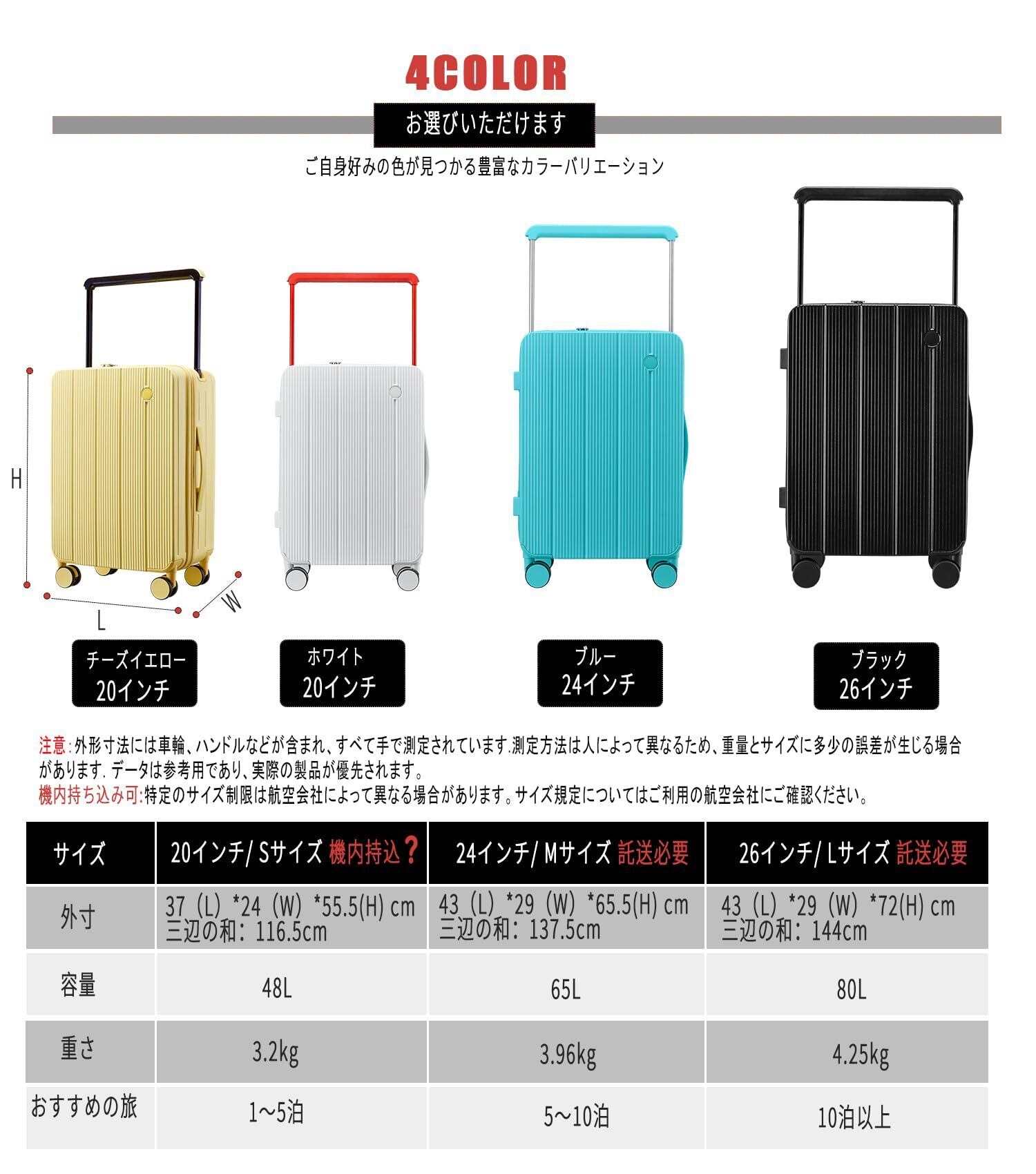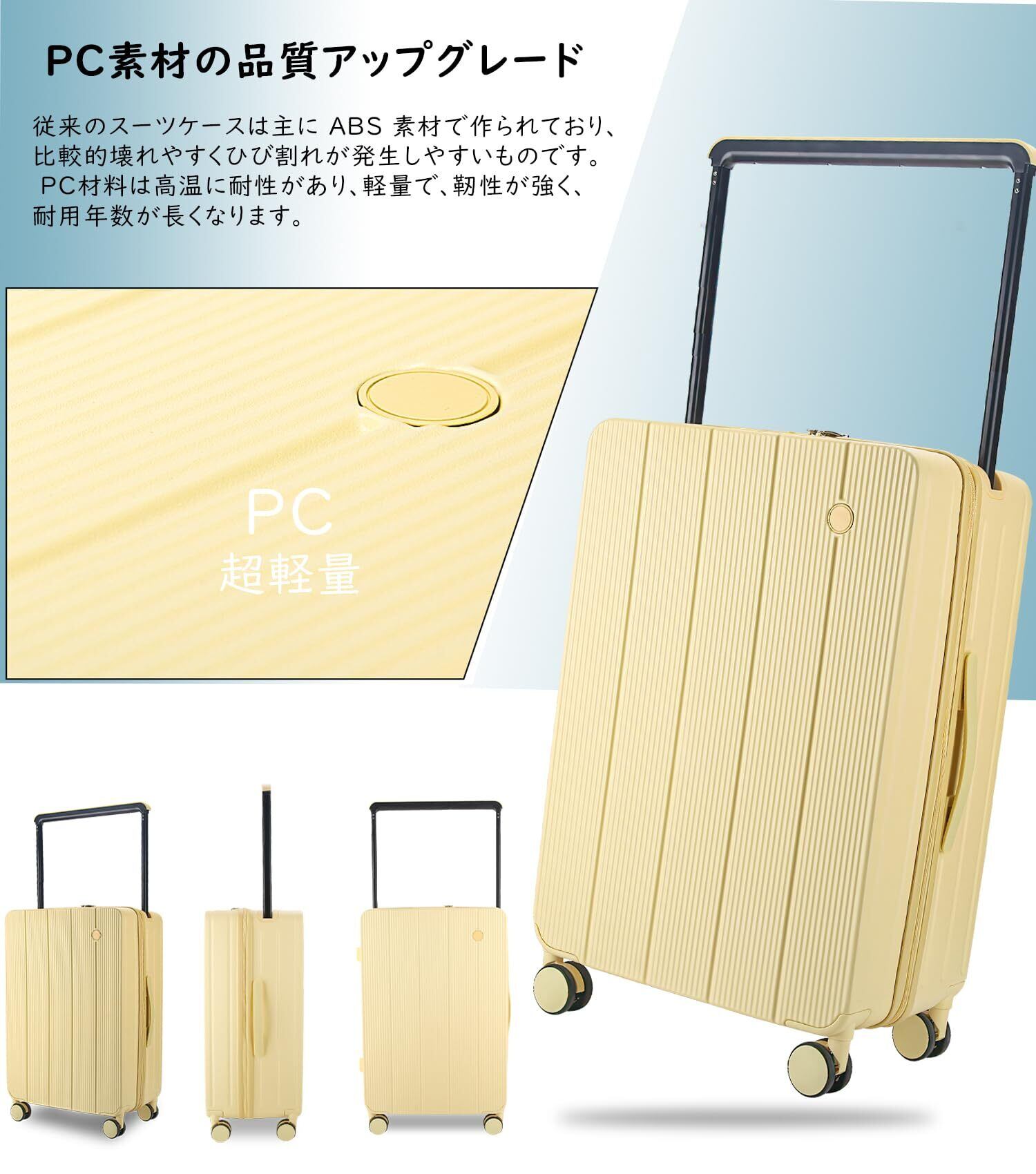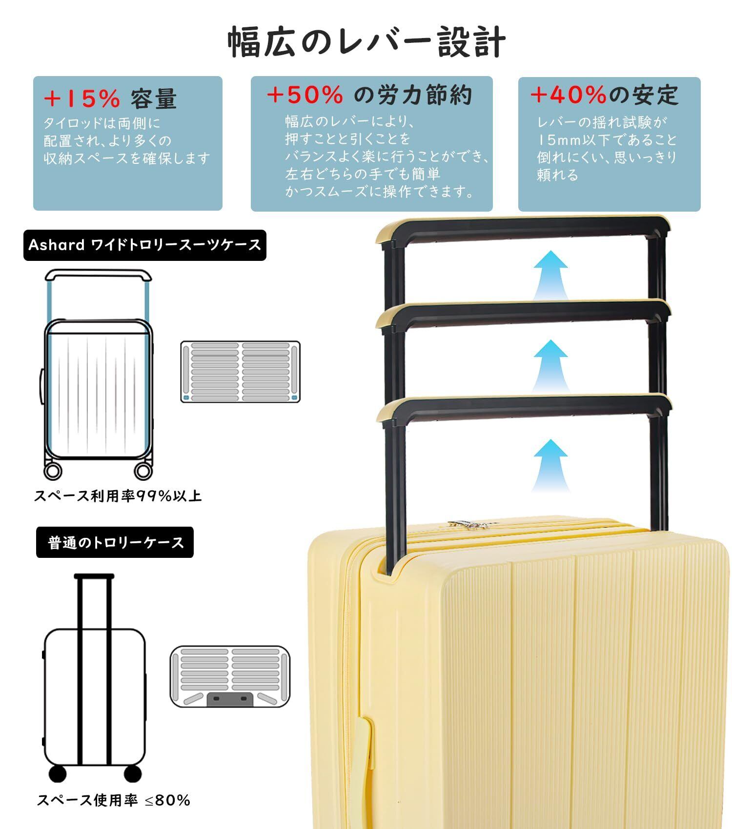 【数量限定】[Ashard] スーツケース 大容量 キャリーケース 超軽量 ピュアPC材質 USBポート付き 充電機能 フック機能 キャリーバッグ 耐衝撃 静音 360度回転 TSAロック搭載 人気 おしゃれ 幅広のレバーデザイン 旅行 ビジネス 出張 修学 (イエロー, 20インチ/機内持込/48L)